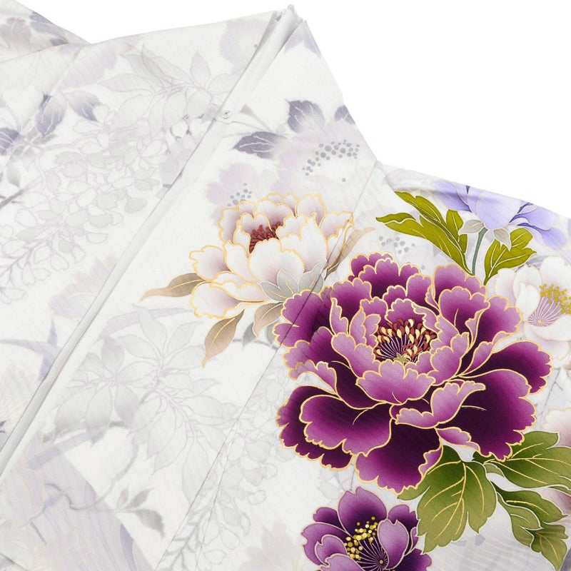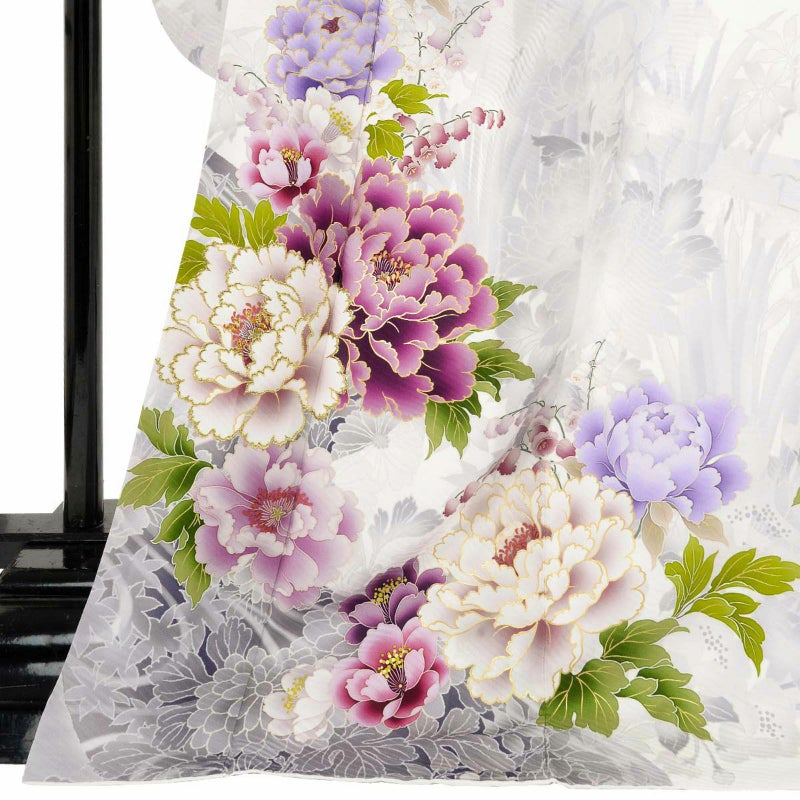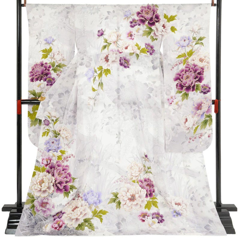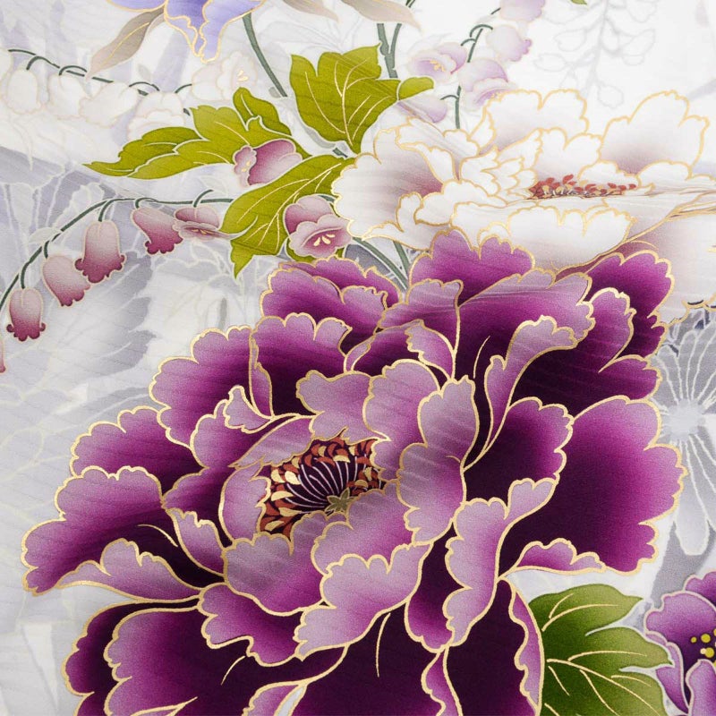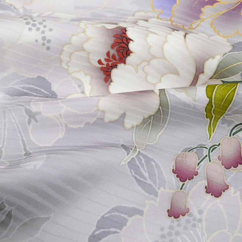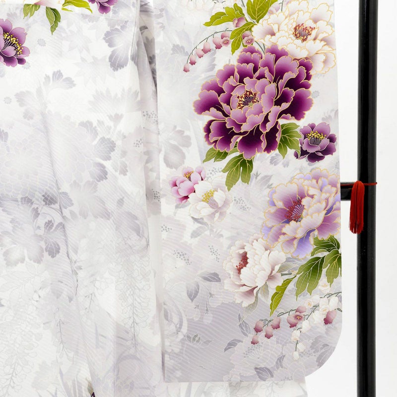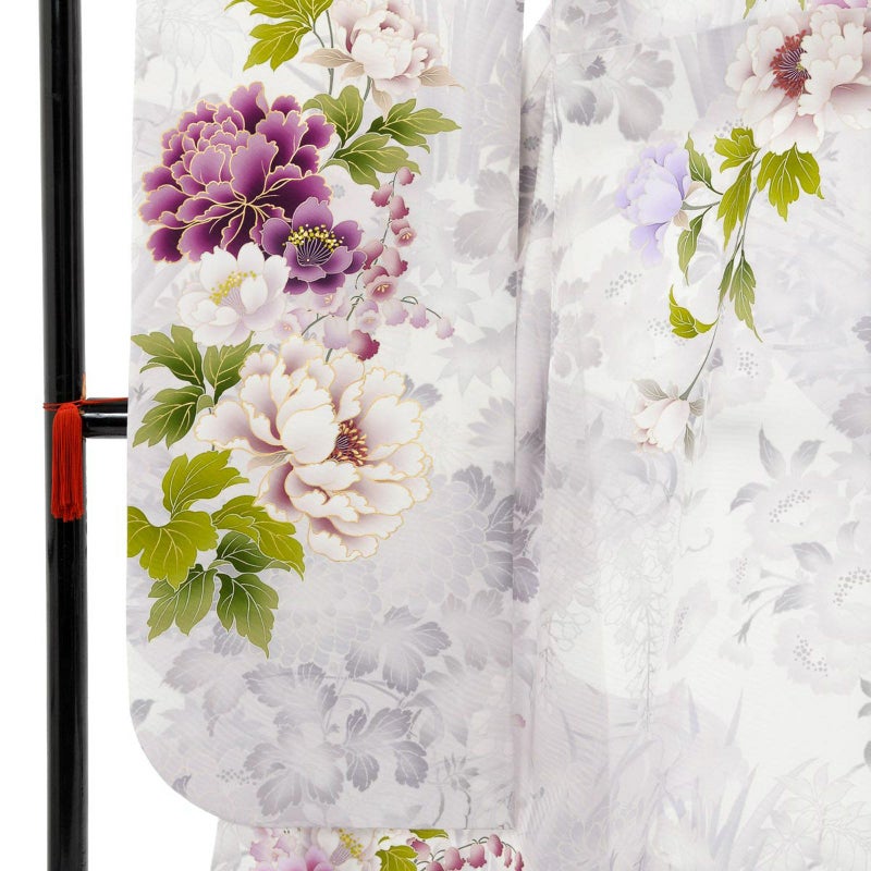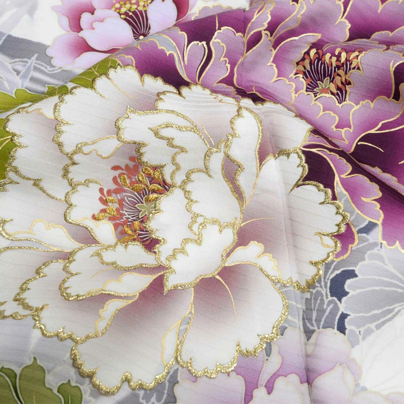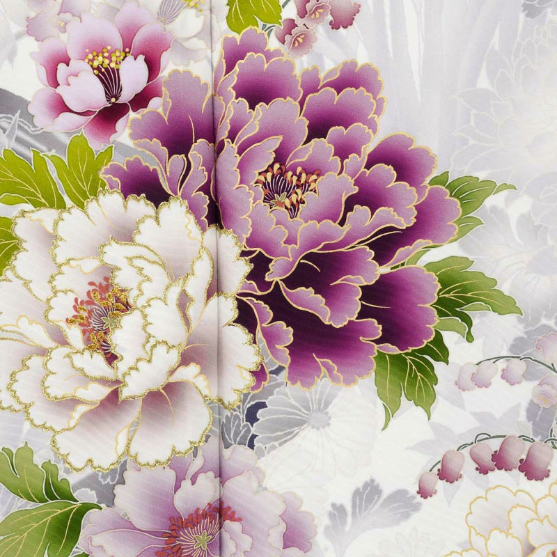 5. 未仕立て 振袖 22点セット「NAENAN なえなのの振袖 アイスグレー×薄藤 牡丹」仮絵羽 振り袖 正絹 着物 ブランド振袖 成人式 結婚式 結納 パーティー 晴れ着 【メール便不可】