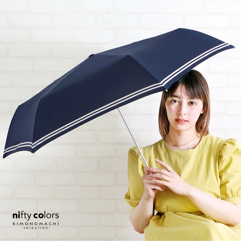 日傘 晴雨兼用「nifty colors 遮光セーラーボーダーミニ55 2364」遮光 遮熱 撥水 はっ水 防水 UVカット PU加工 折りたたみ 折傘 女性用 レディース women's プレゼント ギフト 母の日【メール便不可】