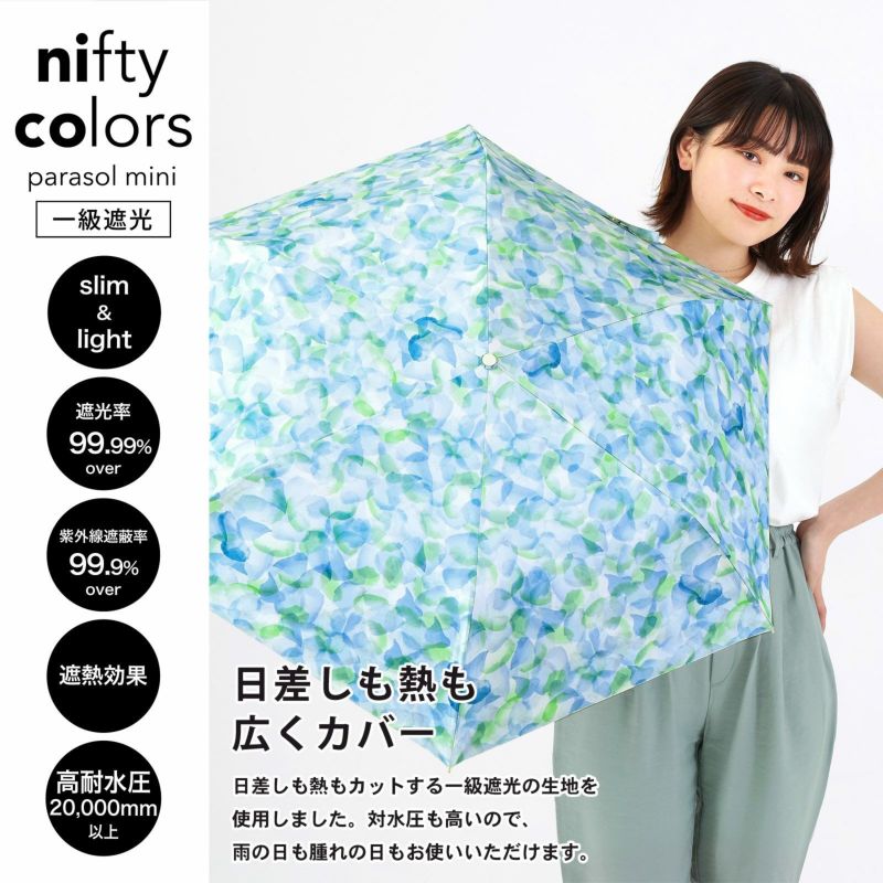 日傘 晴雨兼用「nifty colors 遮光花びらスレンダーミニ 2400」遮光 遮熱 撥水 はっ水 防水 UVカット PU加工 折りたたみ 折傘 女性用 レディース women's プレゼント ギフト 母の日【メール便不可】