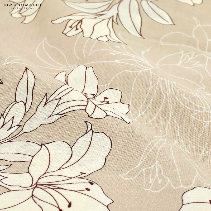 【色柄】カフェオレのような明るいベージュの地。濃茶色の線で描かれた百合の花は薄いクリーム色やごく淡いグレーの配色。白の輪郭線で描かれた百合のシルエット。