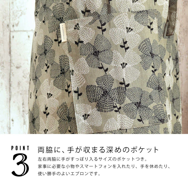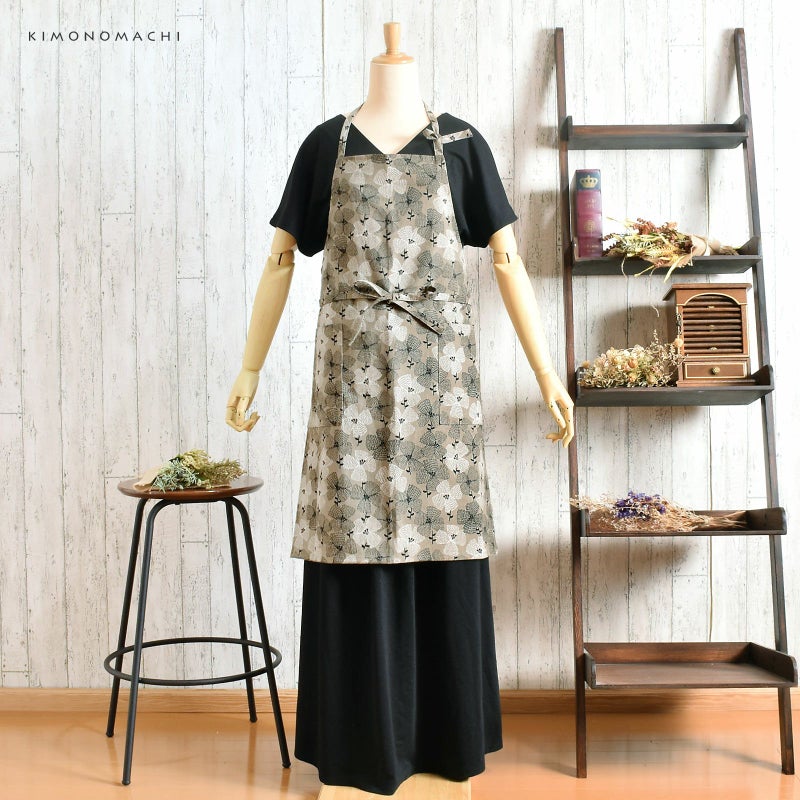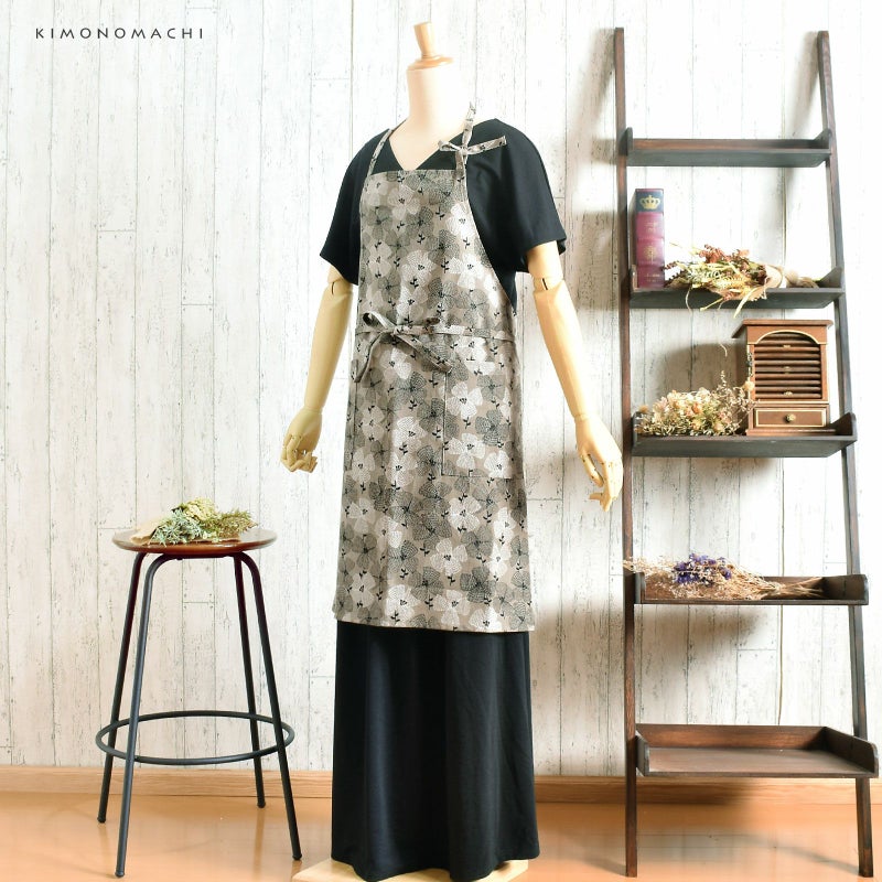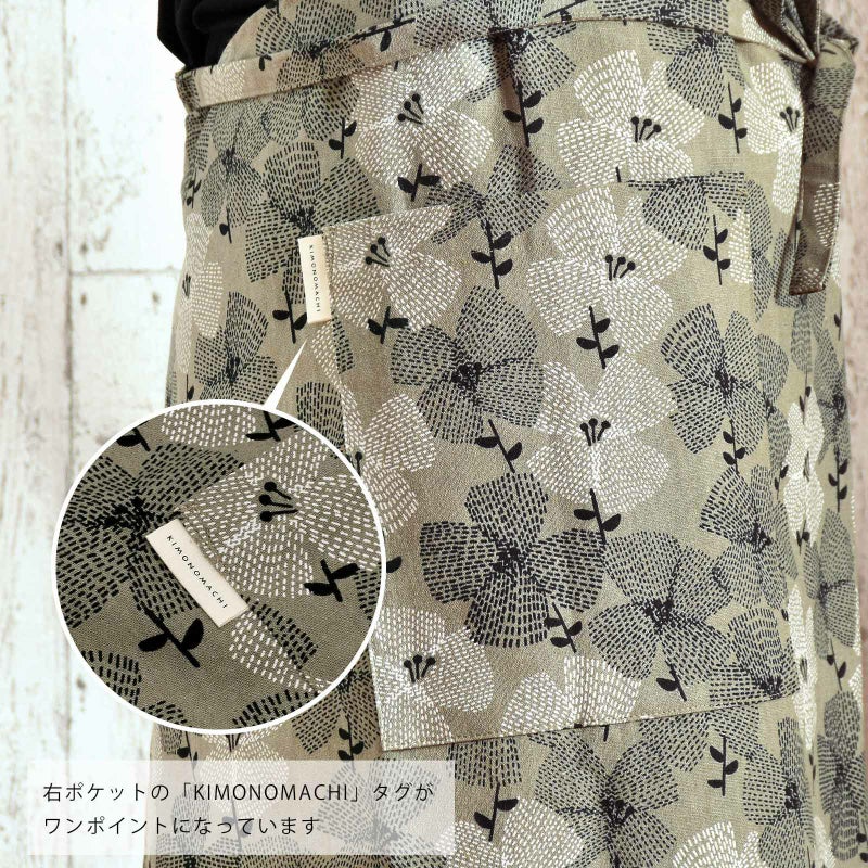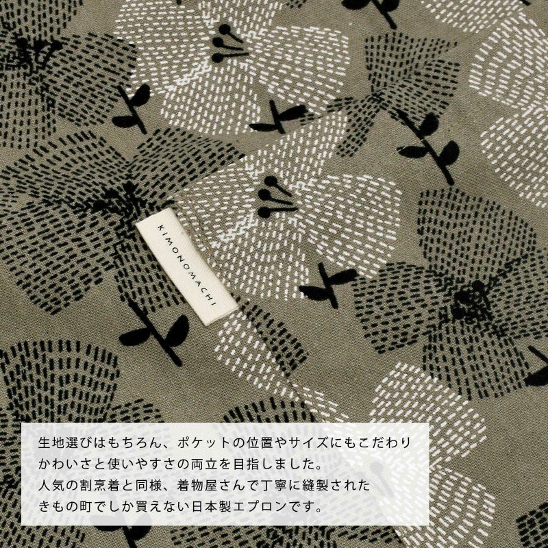 エプロン「グレー テンセンフラワー」 実用的 日本製 オシャレ かわいい KIMONOMACHI オリジナル カフェエプロン 母の日 敬老の日 誕生日 プレゼント、ギフト、贈り物に最適 【送料無料】