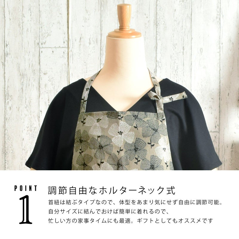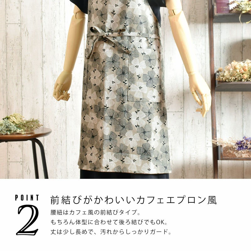 母の日や敬老の日のギフトにも!オシャレかわいいオリジナルエプロン エプロン「グレー テンセンフラワー」 実用的 日本製 オシャレ かわいい KIMONOMACHI オリジナル カフェエプロン 母の日 敬老の日 誕生日 プレゼント、ギフト、贈り物に最適<H> 【送料無料】【メール便対応可】ss2512wkm10