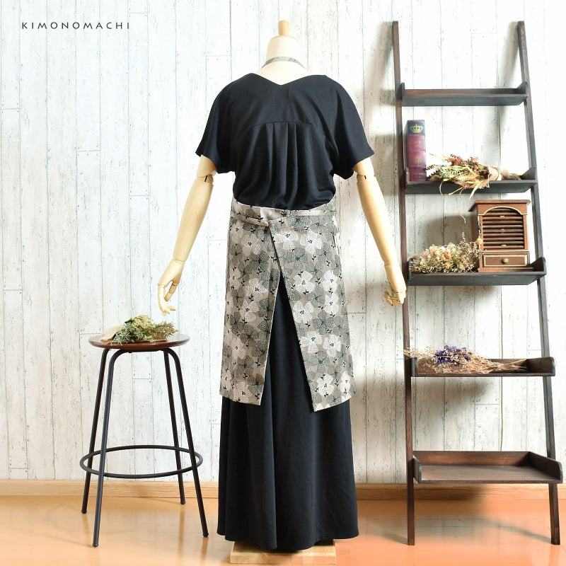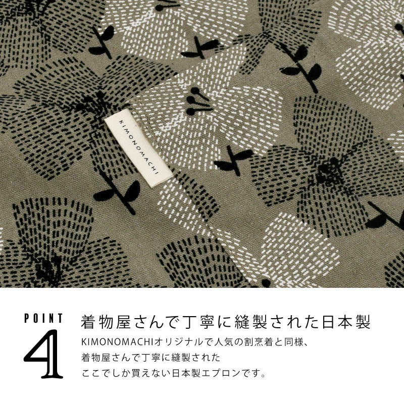 4. エプロン「グレー テンセンフラワー」 実用的 日本製 オシャレ かわいい KIMONOMACHI オリジナル カフェエプロン 母の日 敬老の日 誕生日 プレゼント、ギフト、贈り物に最適<H> 【送料無料】【メール便対応可】ss2512wkm10