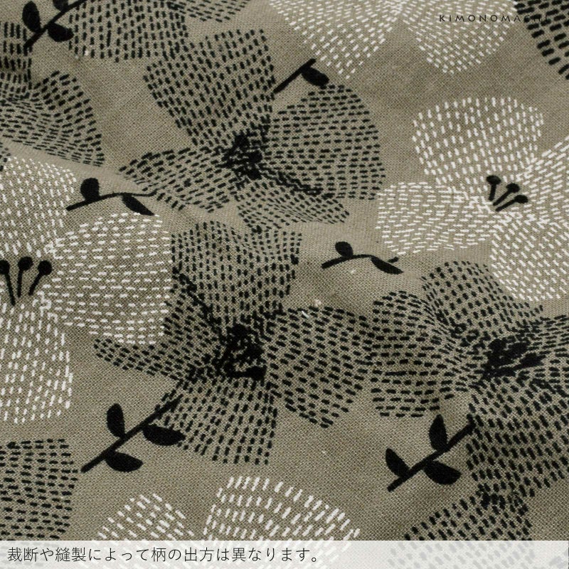 【カラー】ややベージュ色みのグレーの地。白と黒の点線で表現されたお花の柄。