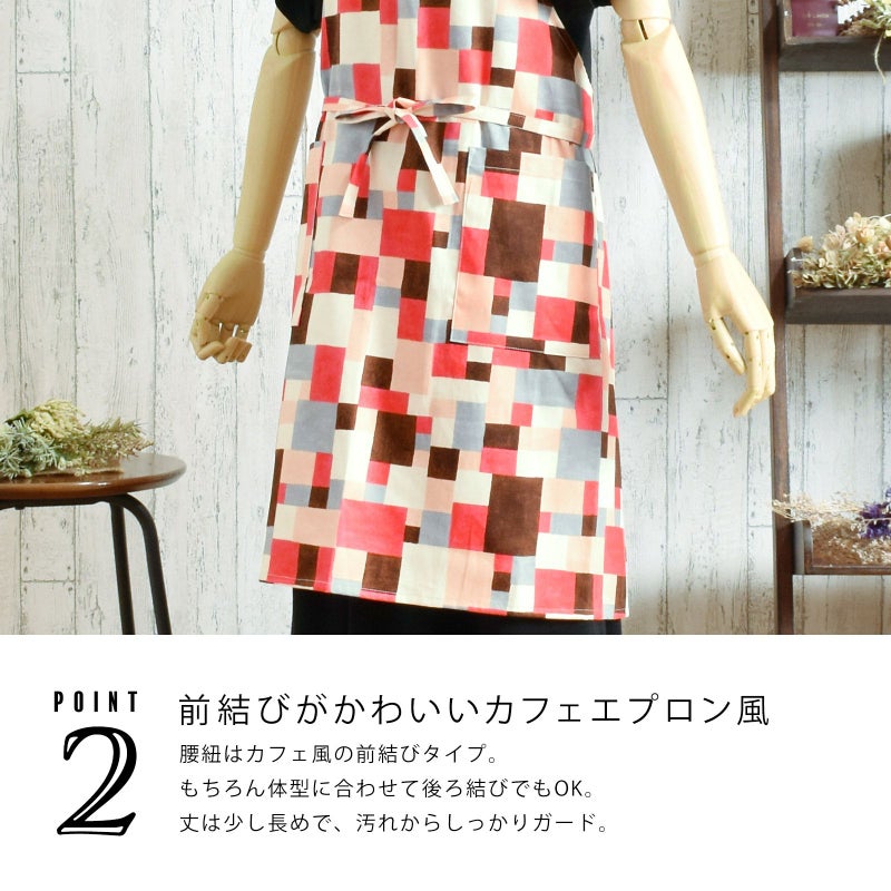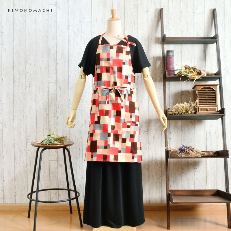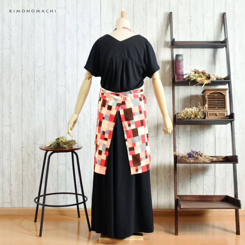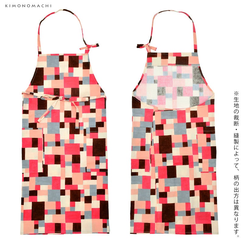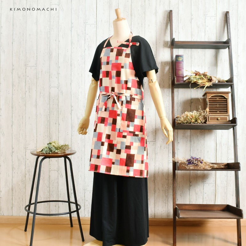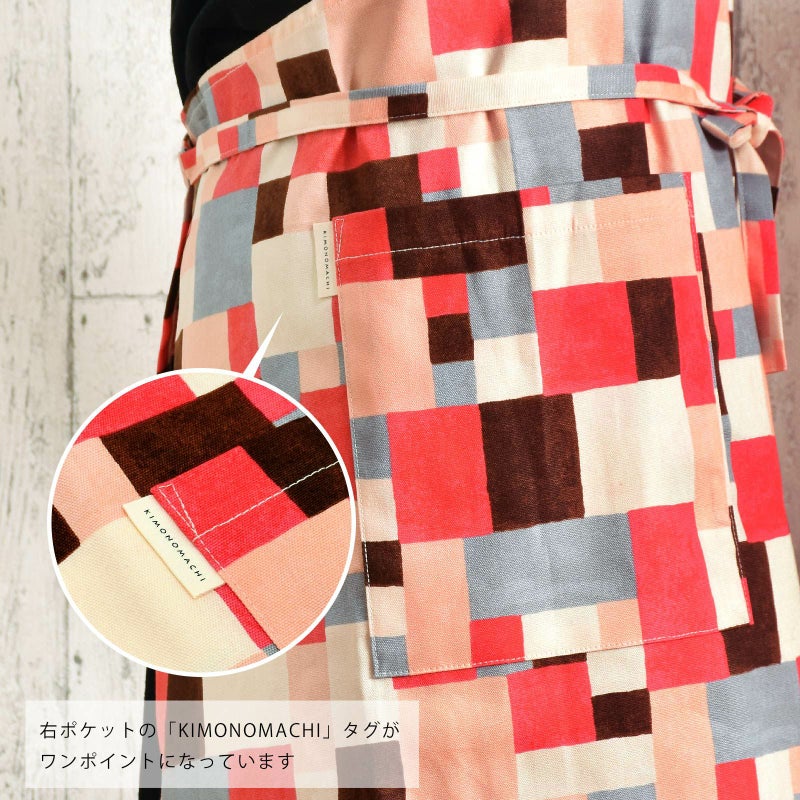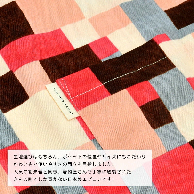 エプロン「ピンク モザイクブロック」 実用的 日本製 オシャレ かわいい KIMONOMACHI オリジナル カフェエプロン 母の日 敬老の日 誕生日 プレゼント、ギフト、贈り物に最適 【送料無料】