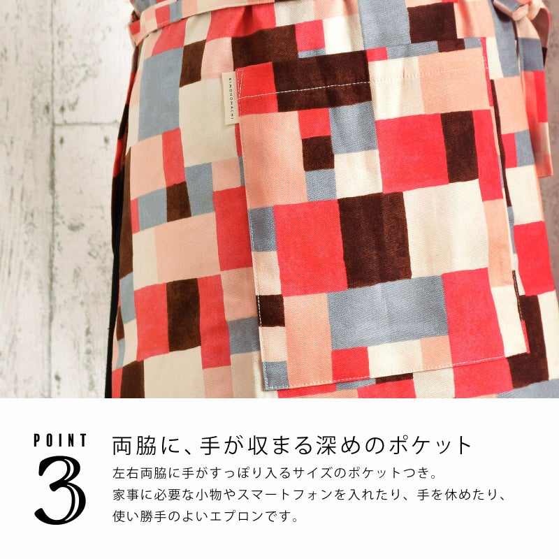 3. エプロン「ピンク モザイクブロック」 実用的 日本製 オシャレ かわいい KIMONOMACHI オリジナル カフェエプロン 母の日 敬老の日 誕生日 プレゼント、ギフト、贈り物に最適<H> 【送料無料】【メール便対応可】wm★10%OFF