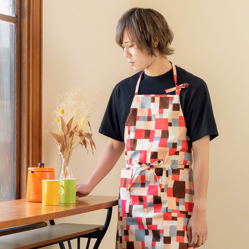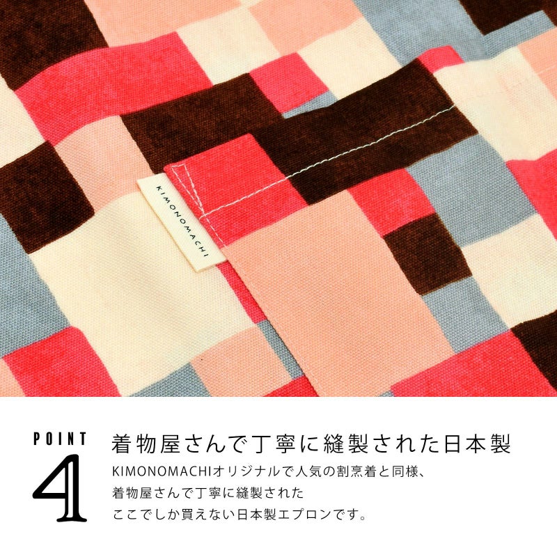 4. エプロン「ピンク モザイクブロック」 実用的 日本製 オシャレ かわいい KIMONOMACHI オリジナル カフェエプロン 母の日 敬老の日 誕生日 プレゼント、ギフト、贈り物に最適<H> 【送料無料】【メール便対応可】wm★10%OFF