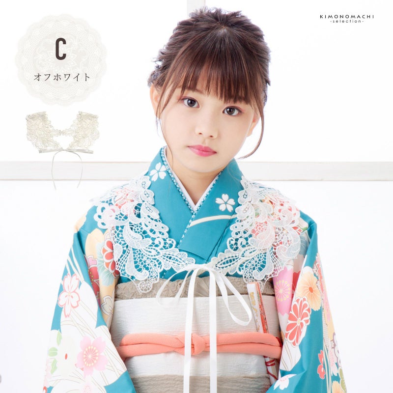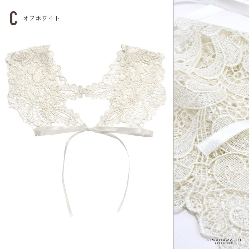 C.オフホワイト:オフホワイトのレース衿。リボンもオフホワイト。