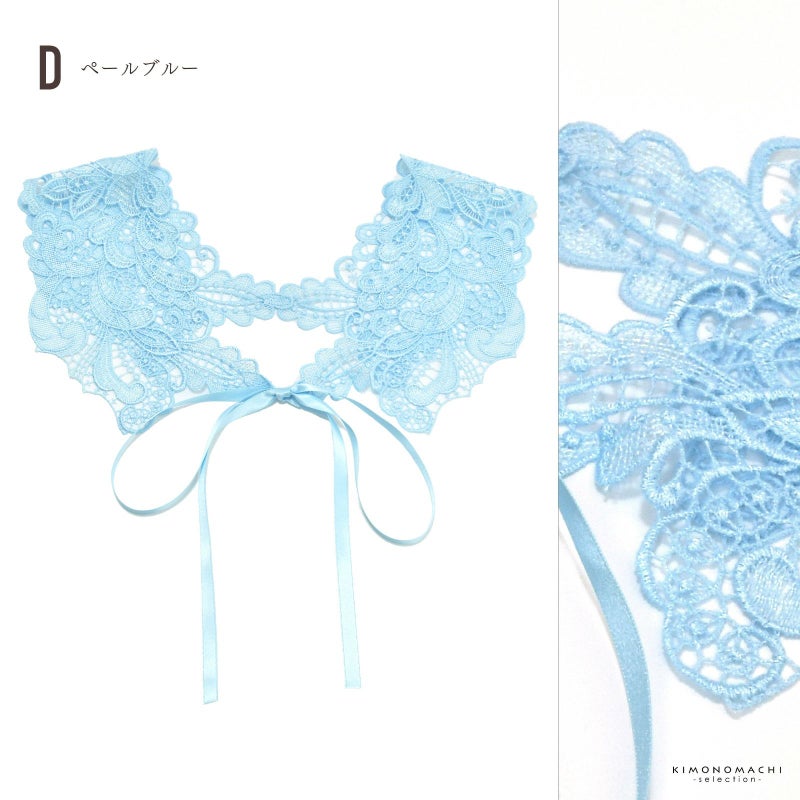 D.ペールブルー:淡いブルーのレース衿。リボンも淡いブルー。