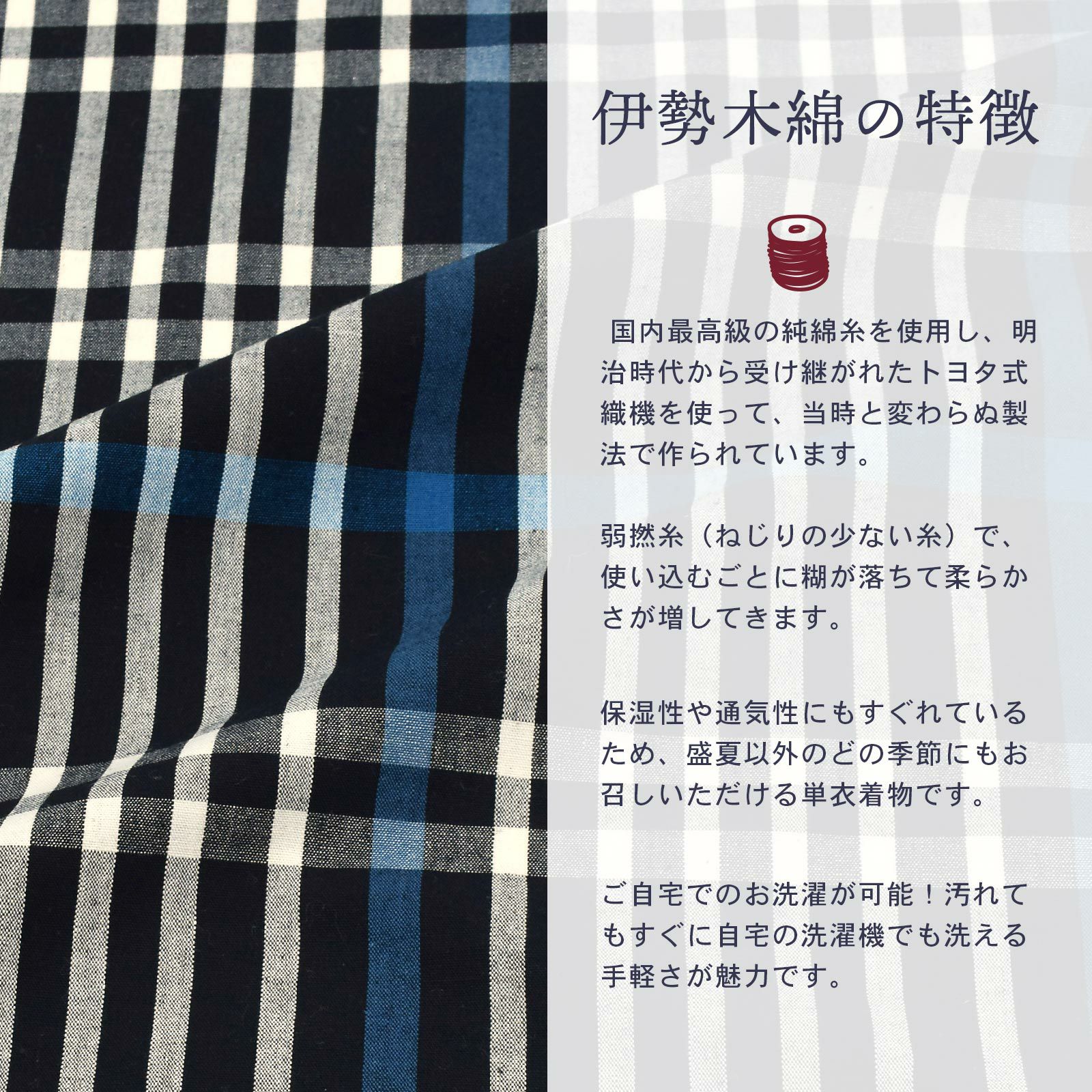 ゆっくりと時間をかけて丁寧に織り上げられた伊勢木綿の優しく素朴な風合いを、ぜひ肌で感じ取ってください。
