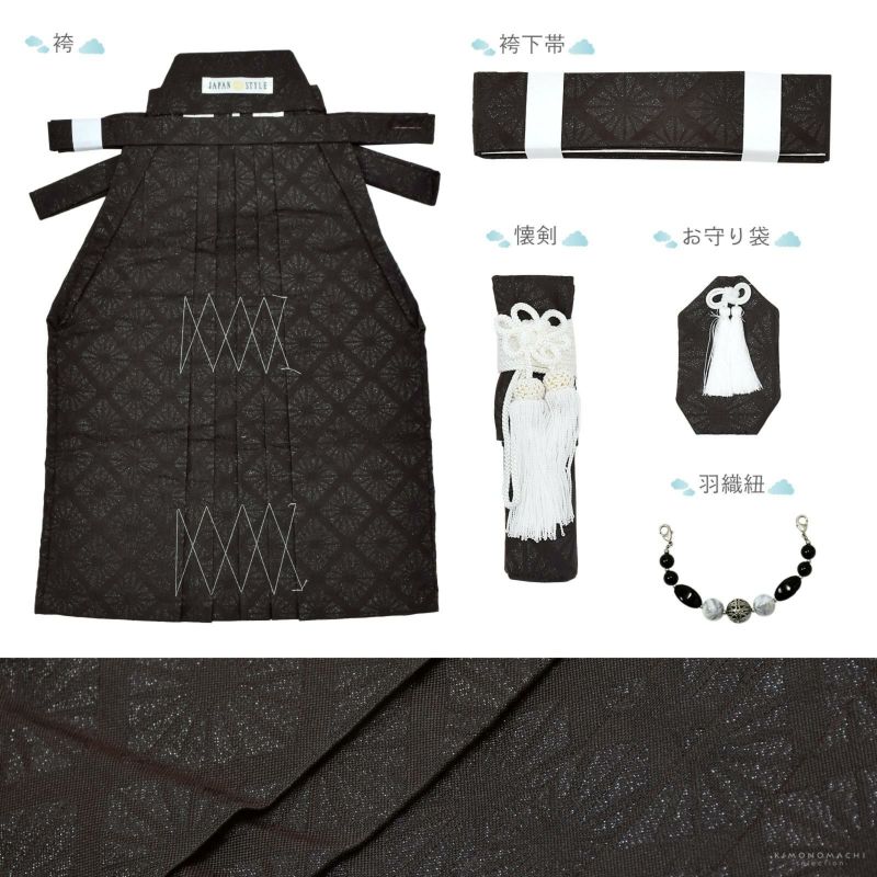 【商品内容】長襦袢・着物・羽織・袴・袴下帯・懐剣・お守り・羽織紐・足袋(プレゼント)・腰ひも2本(プレゼント)・半衿(プレゼント)の計11点