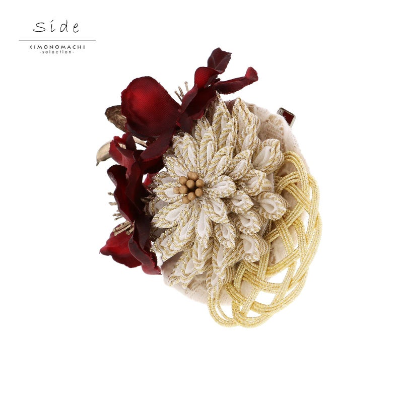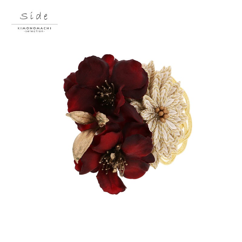 帯留め 単品「ダークレッド 菊つまみ」日本製 成人式 結婚式 振袖 帯飾り つまみ飾り 振袖用帯留め 振袖用帯飾り 着物 振袖小物【メール便不可】