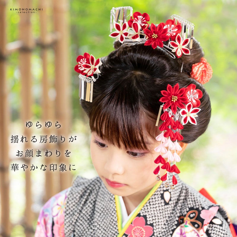 七歳のお子様に限らず、七五三、お正月、桃の節句などの際の振袖、お着物を着る機会に。ぜひ記念に残る髪飾りで可愛らしいお写真を撮ってあげてくださいね♪
