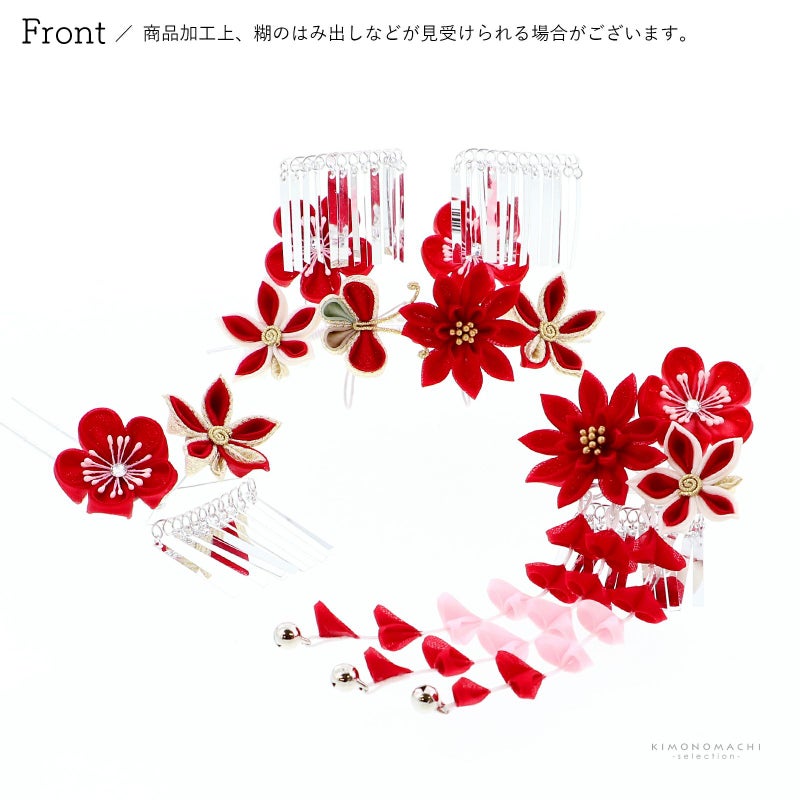 ◇かんざしの足は、お子様の頭に沿うように曲げてご使用ください。また、お花、房飾り、ビラカン等のパーツは多少動かせますので、髪型に合わせて調整してください。