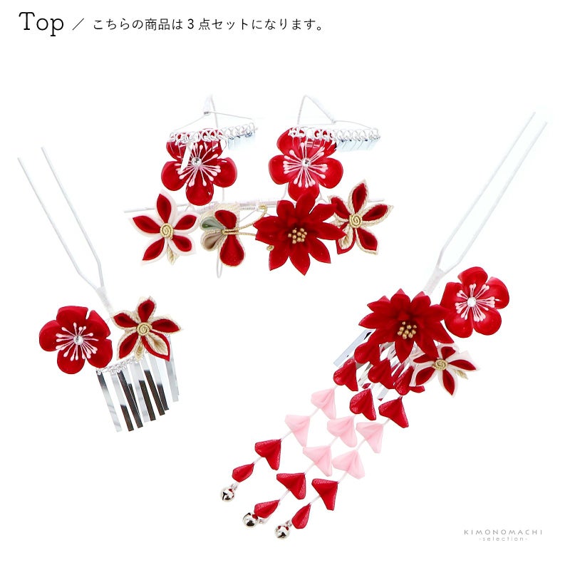 七五三で七才の女の子が日本髪に付ける髪飾り3点セットです。