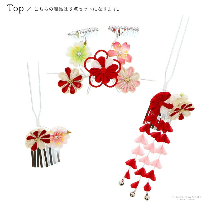 七五三で七才の女の子が日本髪に付ける髪飾り3点セットです。