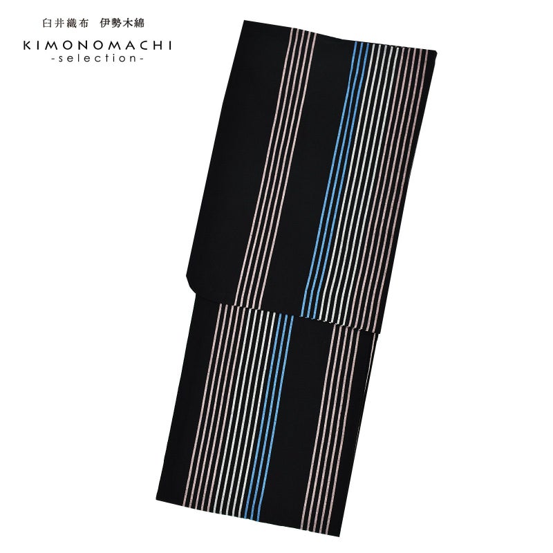 やわらかく、どこかぬくもりが感じられる「伊勢木綿」のお仕立て上がり単衣着物 伊勢木綿 洗える着物 単品「縞 黒地、洗柿×白×薄青」お仕立て上がり 木綿きもの 日本製 三重県 伝統工芸品 単衣 綿 カジュアル チェック 小紋 レディース キモノ kimono【メール便不可】