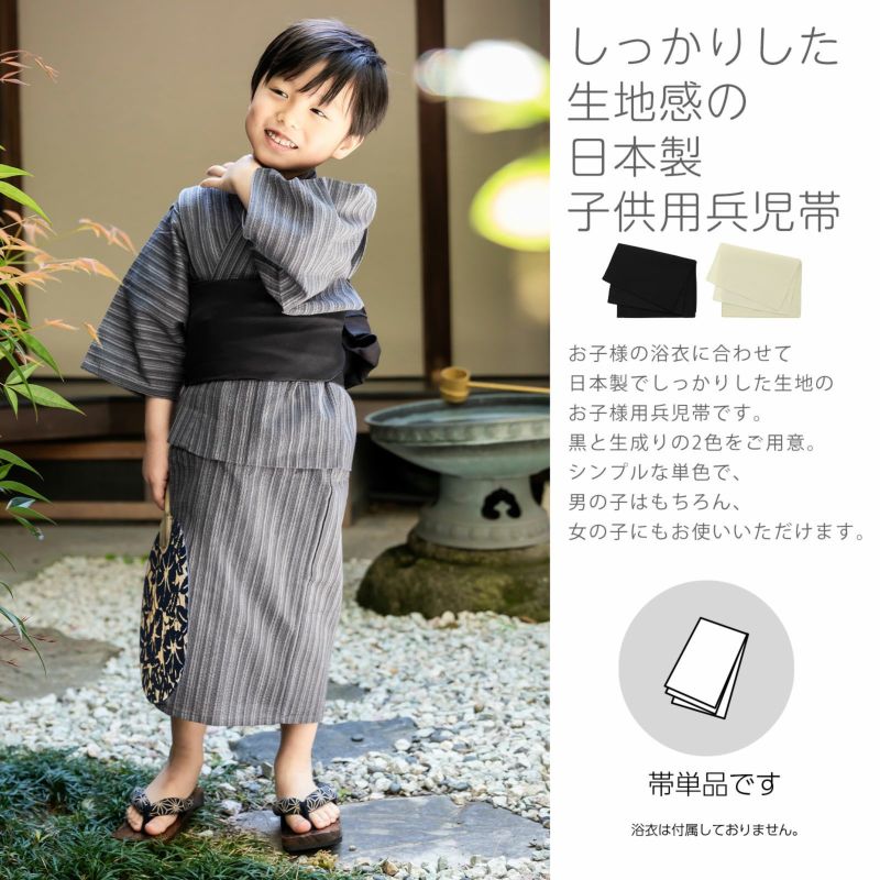 男の子 浴衣帯 兵児帯 単品「黒・生成り」日本製 兵児帯 男児浴衣帯 女児浴衣帯 女の子 キッズ 子供【メール便不可】