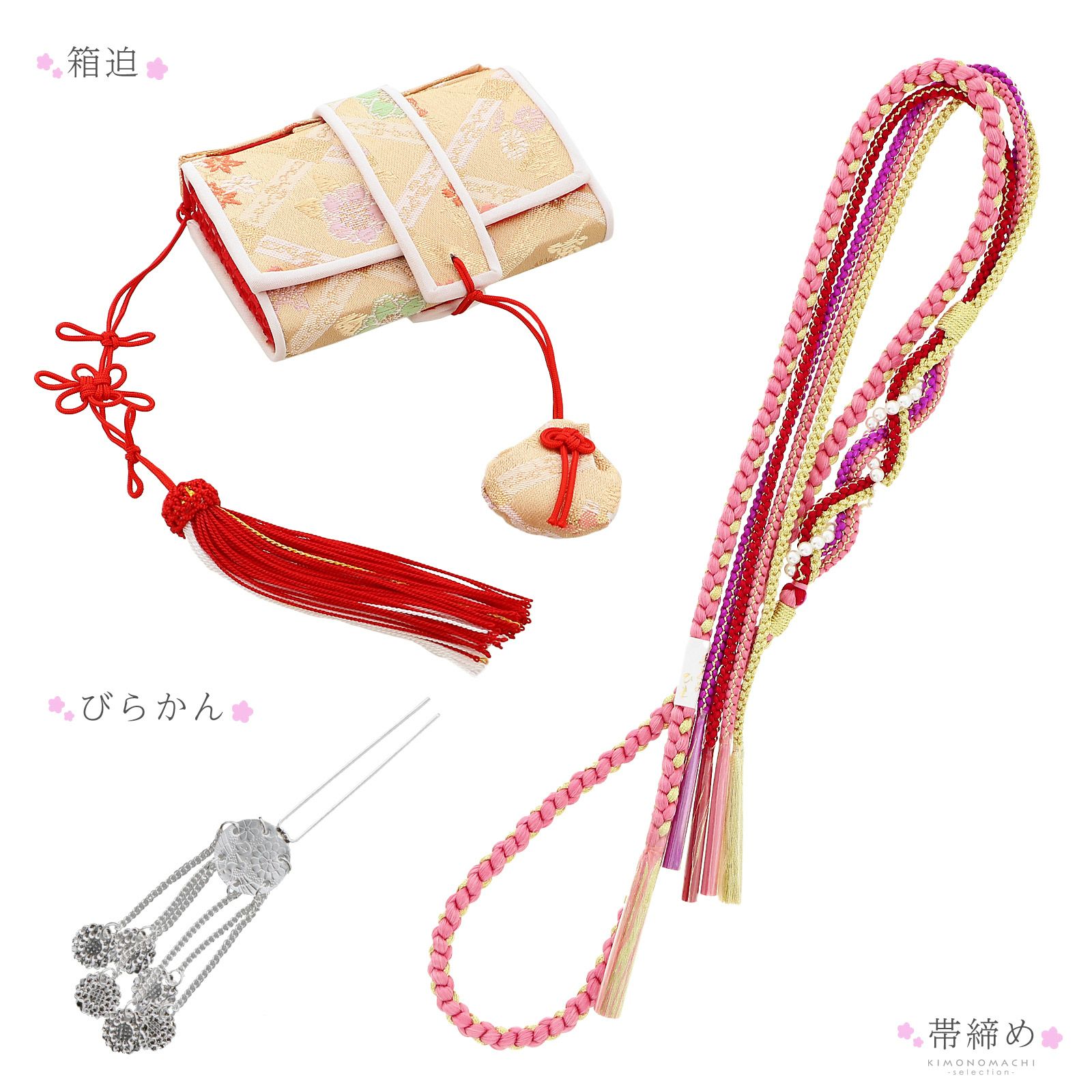 七歳の七五三(四つ身着物)の着付けに必要なものが揃ったフルセットです。お洒落で女の子らしい雰囲気。