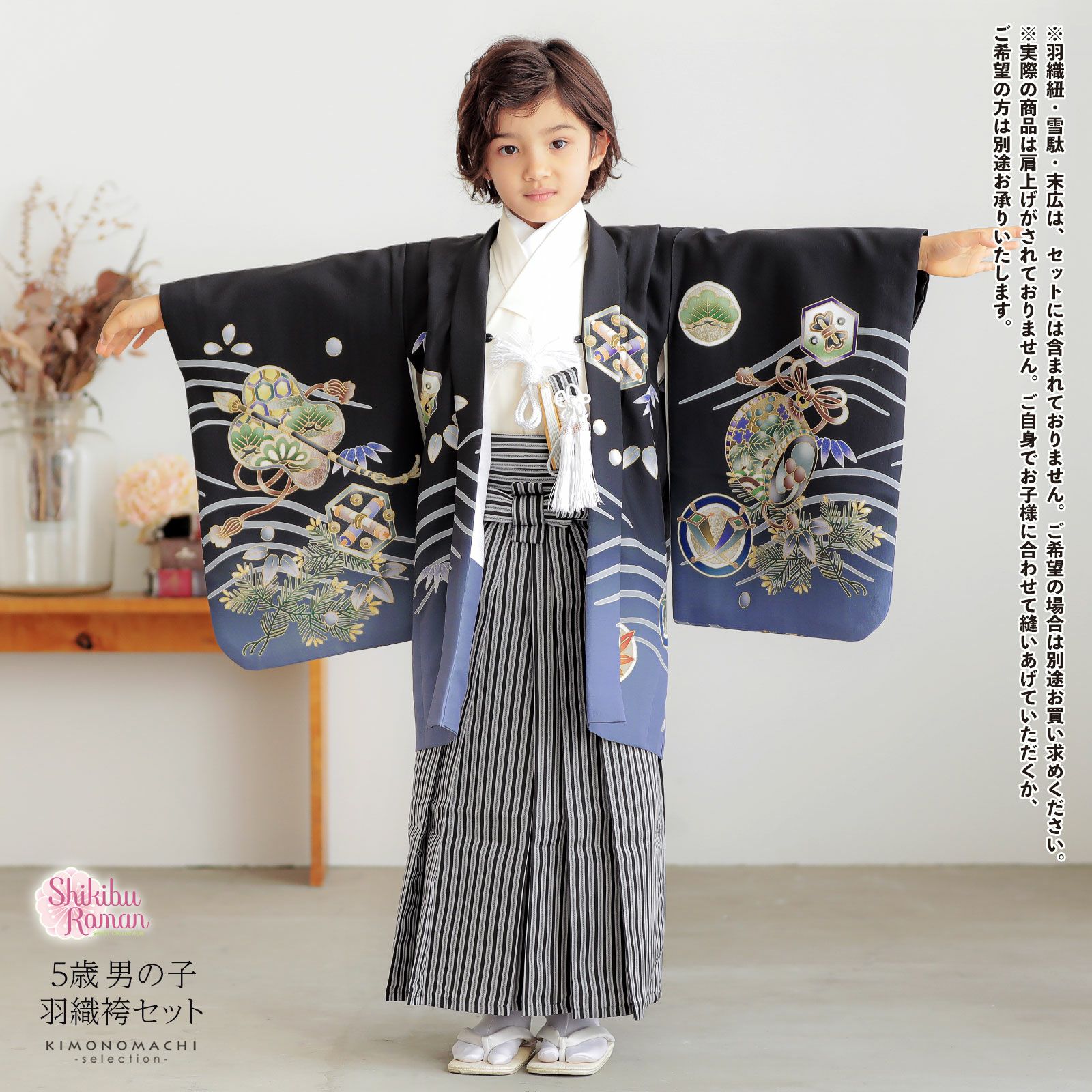 5歳、7歳の男の子の七五三に。5才、6才の卒園式に。着付けに必要なものが揃ったフルセットでお届けいたします。七五三(3才、数えの5才、満5才)、端午の節句、お正月に!
