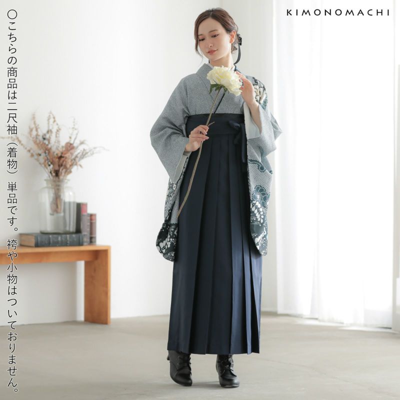 3. 二尺袖着物 単品「藍色 菊牡丹に疋田」お仕立て上がり レディース 洗える着物 二尺袖 着物 袴に合わせて 卒業式 謝恩会に【メール便不可】