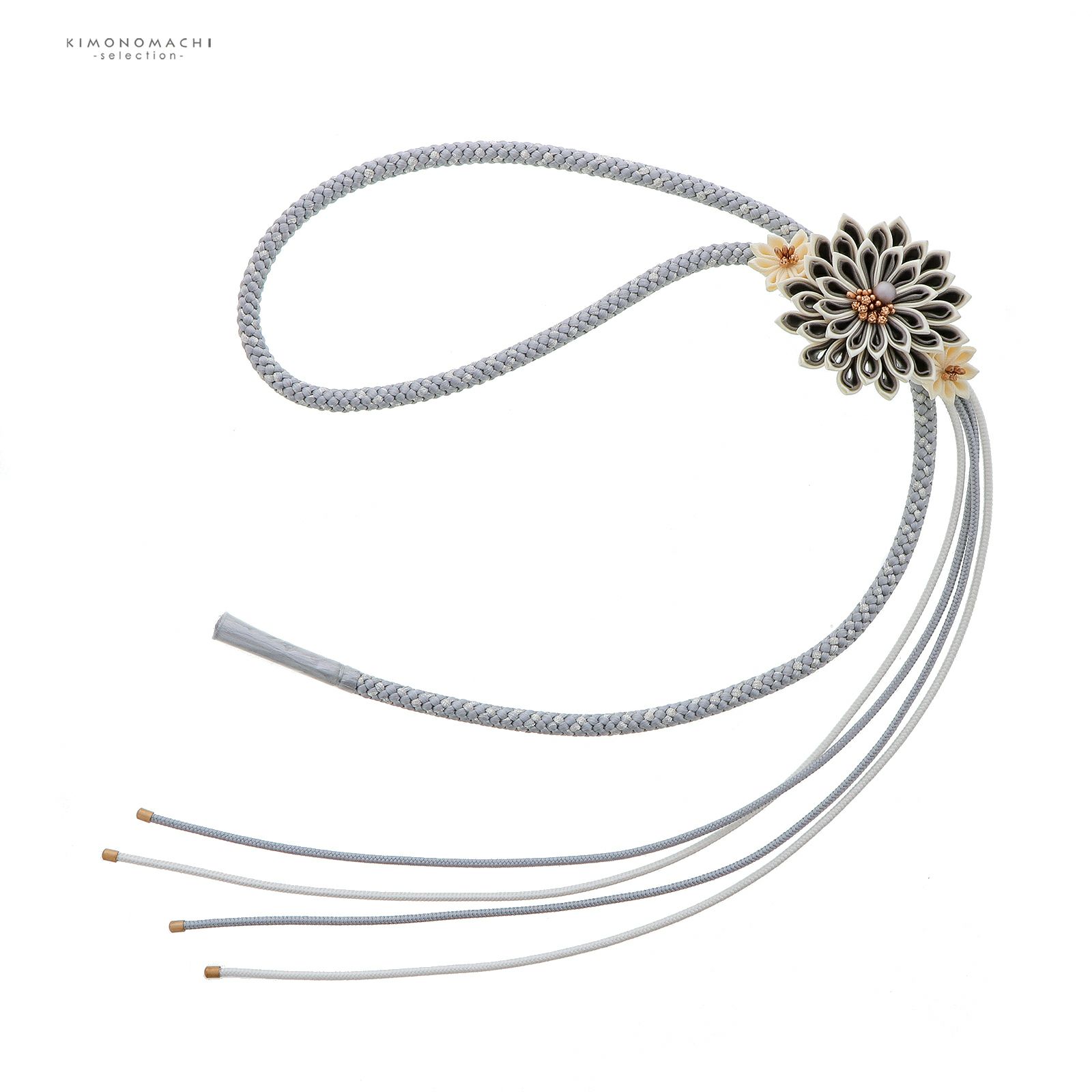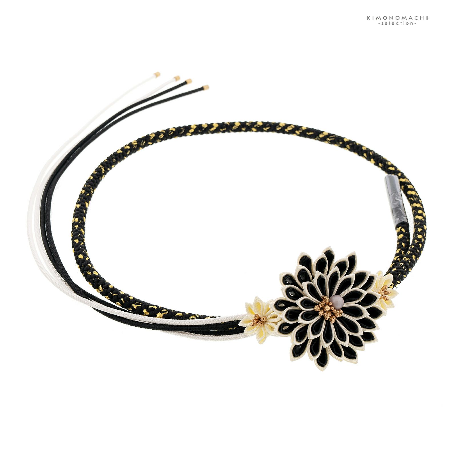 4. 帯締め 振袖用 帯〆 単品「黒・グレー・白 つまみの剣菊」全3色 日本製 正絹 成人式 結婚式 振袖 正絹帯締め つまみ飾り 振袖用帯締め 着物 振袖小物【メール便不可】