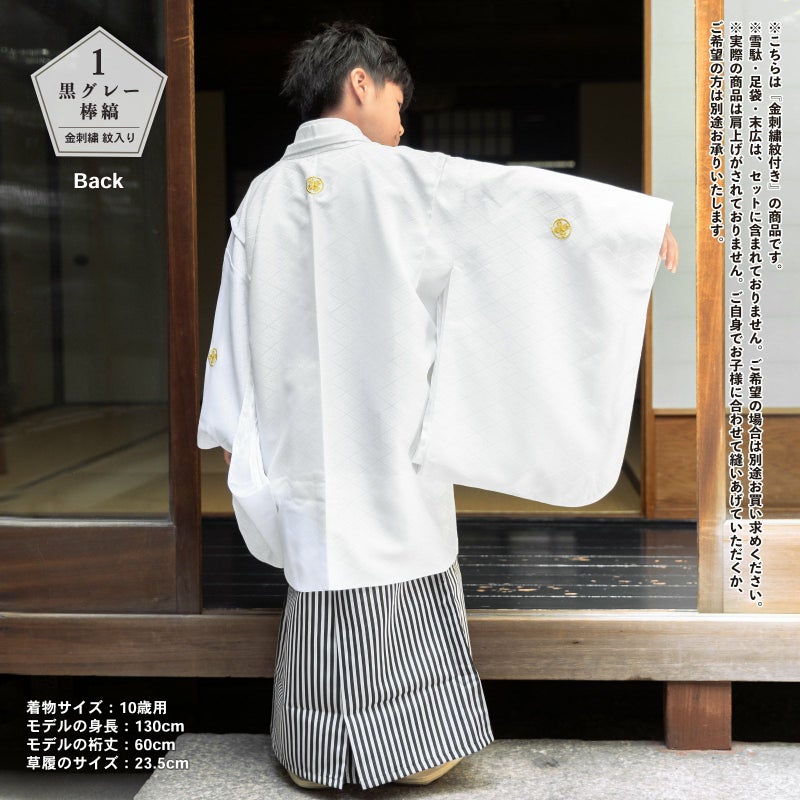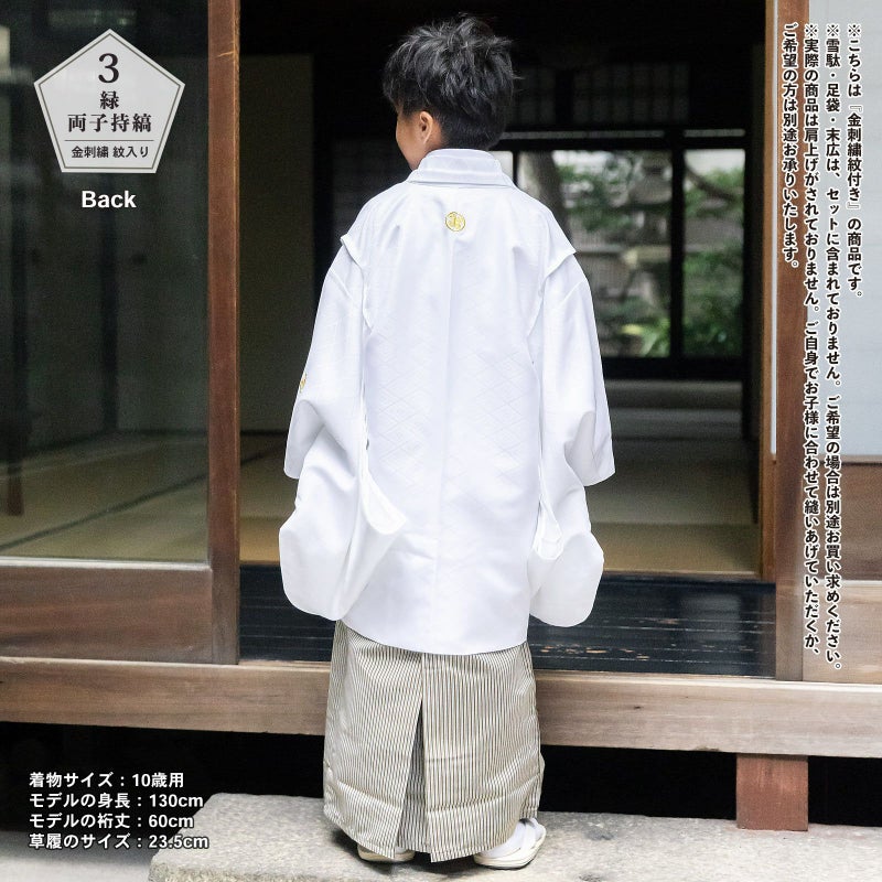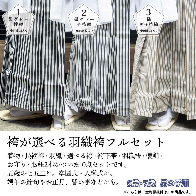 5歳、7歳の男の子の七五三に。羽織に金の刺繍紋が入った袴セットです。七五三、卒園式、入学式、端午の節句、お正月に!