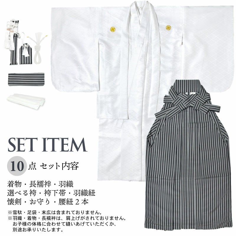 【商品内容】着物、長襦袢、羽織、選べる袴、袴下帯、羽織紐、懐剣、お守り、腰紐2本