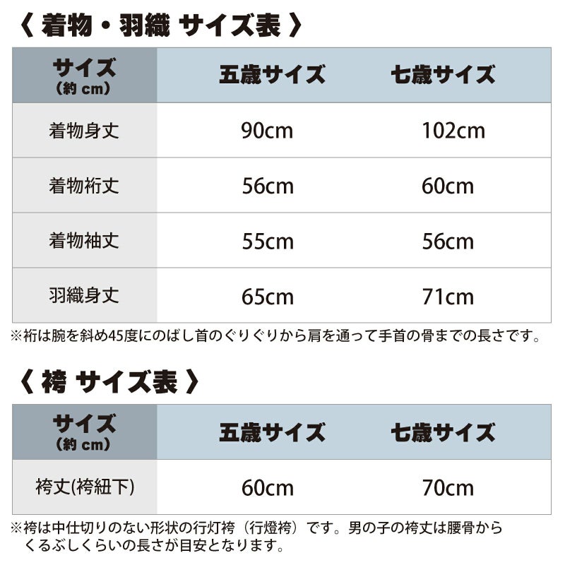 ※羽織、着物、長襦袢は肩上げがされておりません。お子様の体格に合わせて縫い上げていただくか、別途承ります。