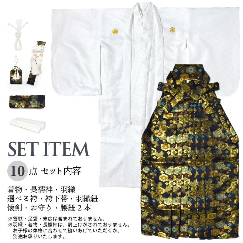 【商品内容】着物、長襦袢、羽織、選べる袴、角帯、羽織紐、懐剣、お守り、腰紐2本