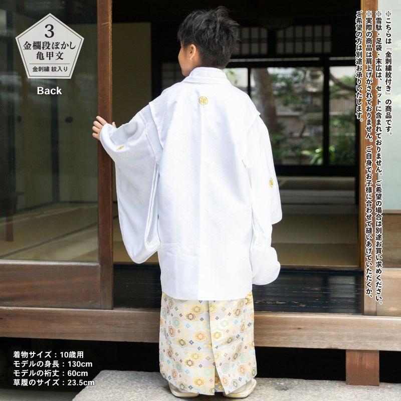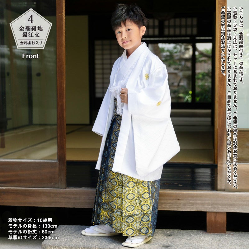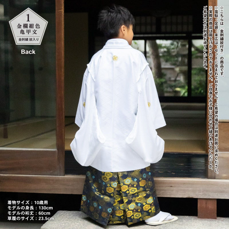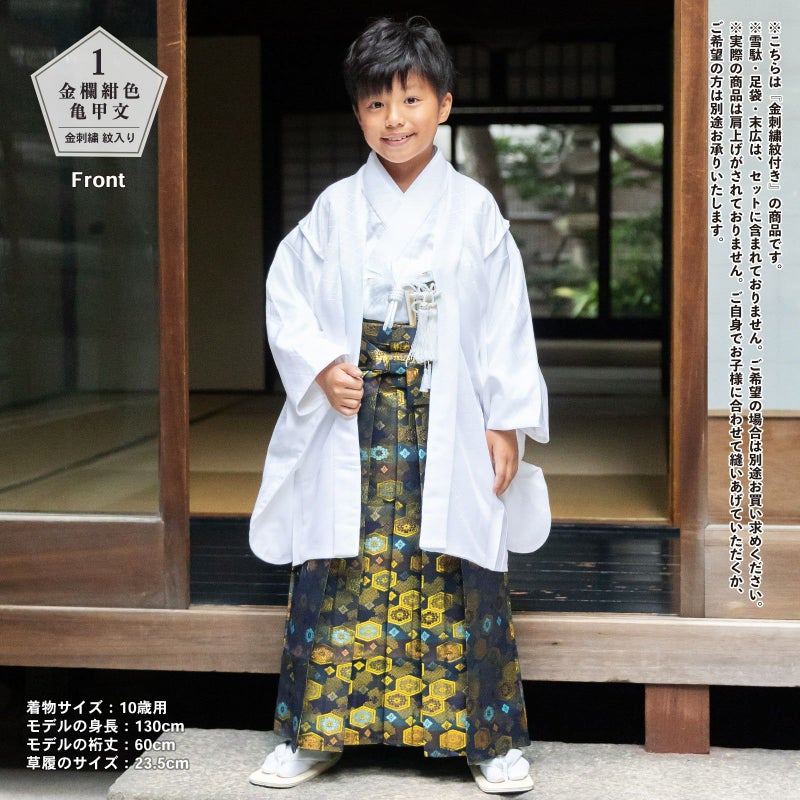 10歳、13歳の男の子に。羽織に金の刺繍紋が入った袴セットです。ハーフ成人式、十三参り、卒業式、入学式、お正月に!