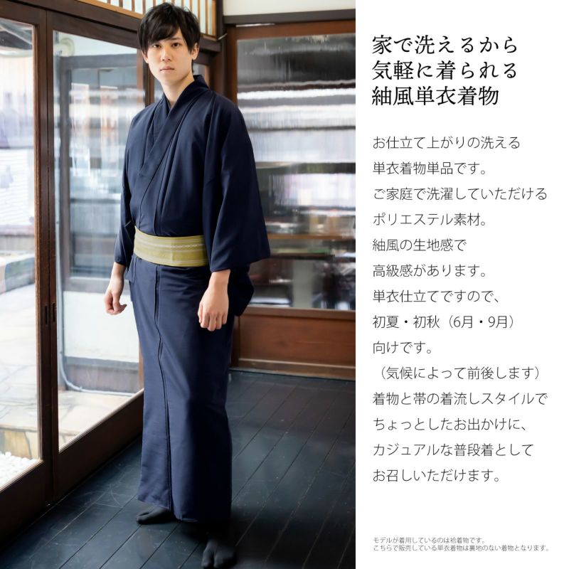 着物 男性 メンズ 洗える着物 単衣 単品「ネイビー 紬風」S/M/L/LL/3L 男着物 男性用着物 男性着物 メンズ着物 お仕立て上がり ポリエステル着物 単衣着物 ひとえ プレタ着物 男着物単品 mens kimono hitoe【メール便不可】