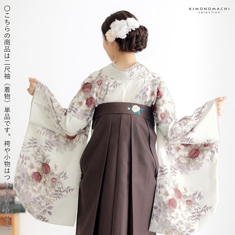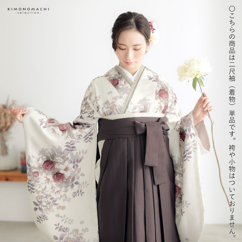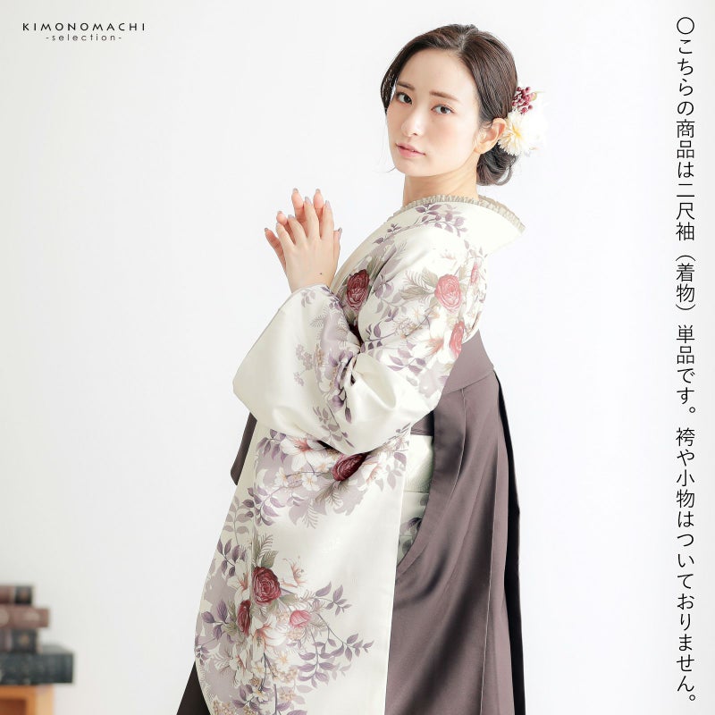 3. 二尺袖着物 単品「ブーケ オフホワイト」お仕立て上がり レディース 洗える着物 二尺袖 着物 袴に合わせて 卒業式 謝恩会に【メール便不可】