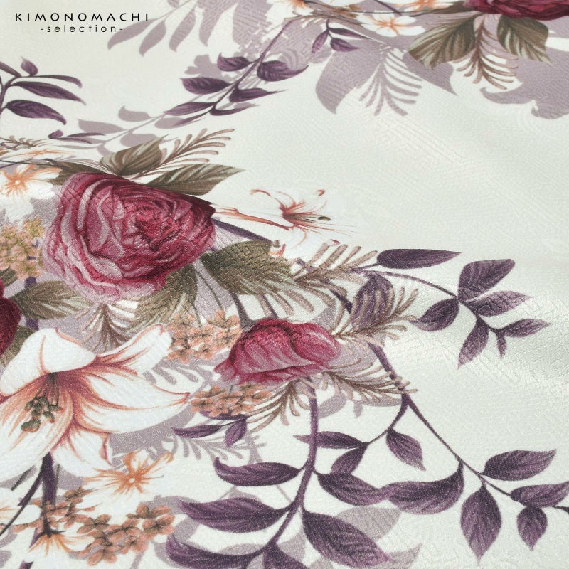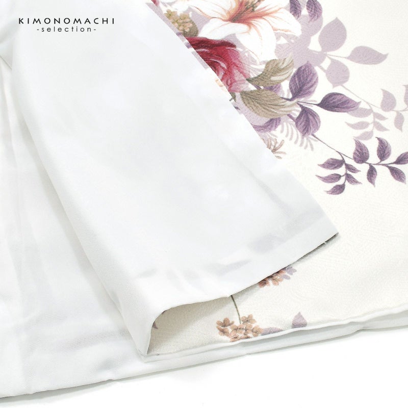4. 二尺袖着物 単品「ブーケ オフホワイト」お仕立て上がり レディース 洗える着物 二尺袖 着物 袴に合わせて 卒業式 謝恩会に【メール便不可】