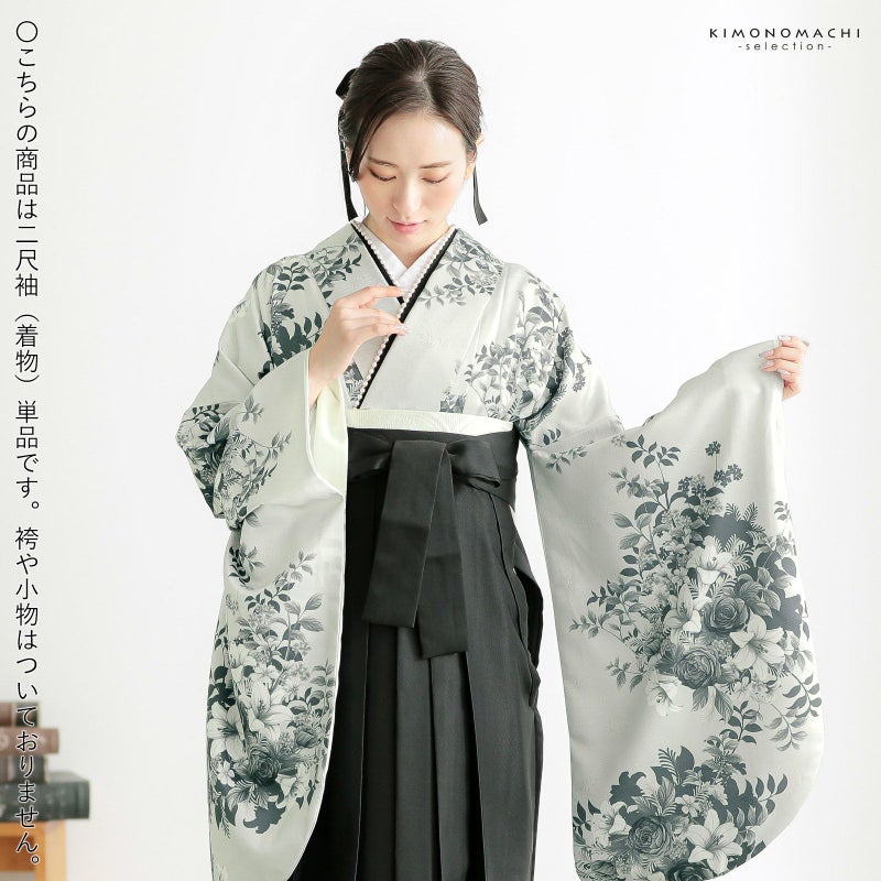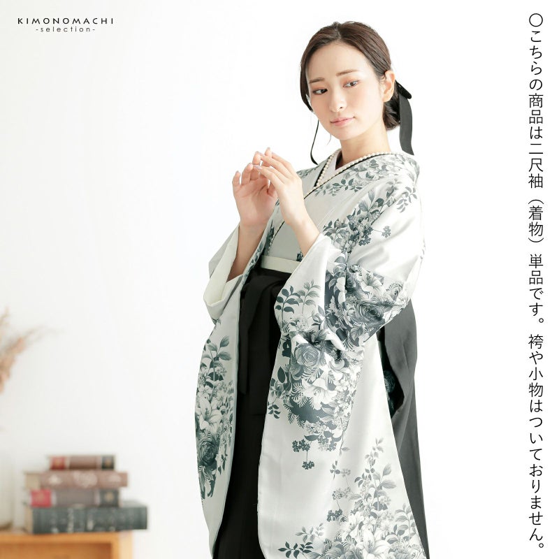 二尺袖着物 単品「ブーケ グレー」お仕立て上がり レディース 洗える着物 二尺袖 着物 袴に合わせて 卒業式 謝恩会に
