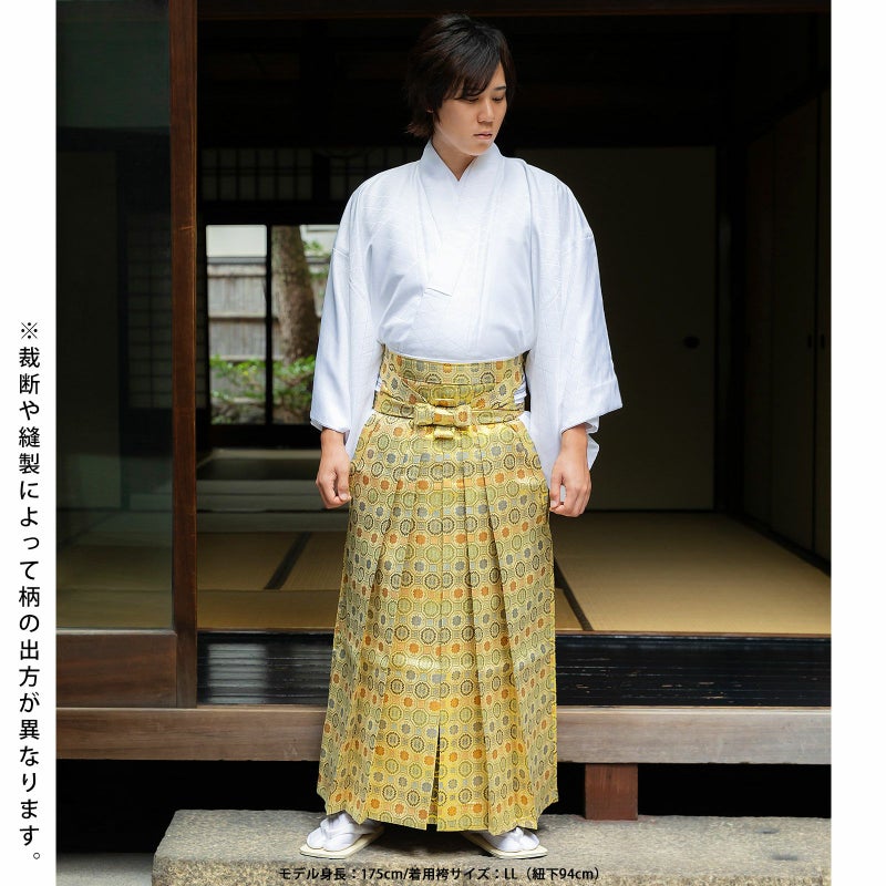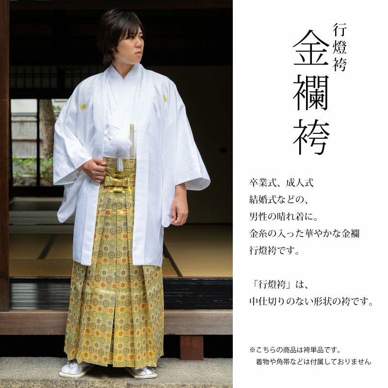 男性 袴 金襴袴 行灯袴 単品「生成り蜀江文」S/M/L/LL サイズ 卒業式 成人式 稽古 紳士 おとこ 着物 結婚式 メンズ【メール便不可】