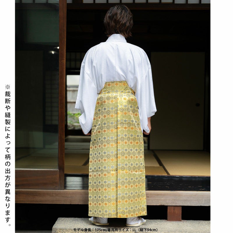 4. 男性 袴 金襴袴 行灯袴 単品「生成り蜀江文」S/M/L/LL サイズ 卒業式 成人式 稽古 紳士 おとこ 着物 結婚式 メンズ【メール便不可】