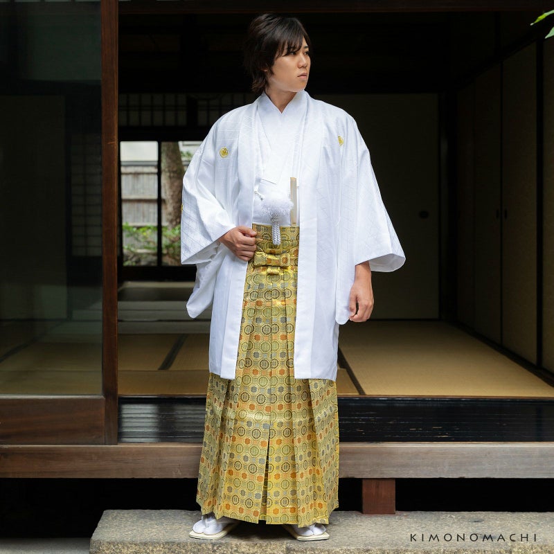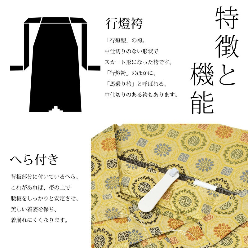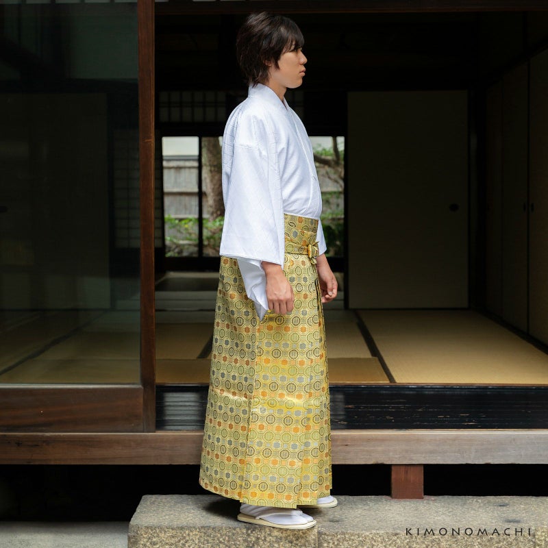 3. 男性 袴 金襴袴 行灯袴 単品「生成り蜀江文」S/M/L/LL サイズ 卒業式 成人式 稽古 紳士 おとこ 着物 結婚式 メンズ【メール便不可】