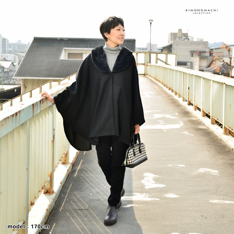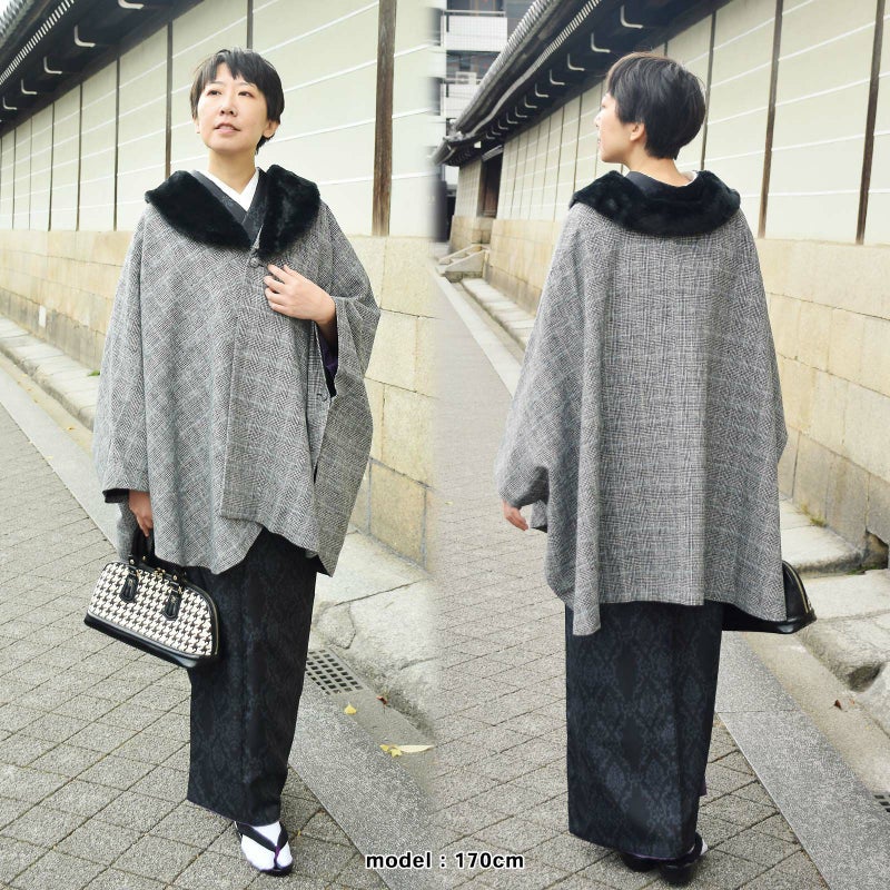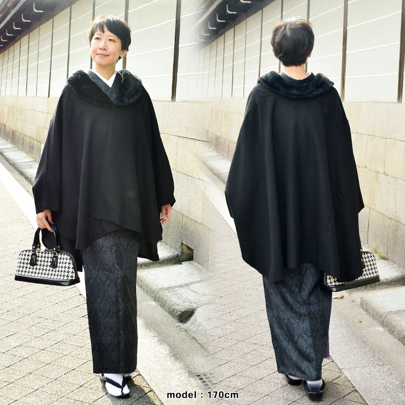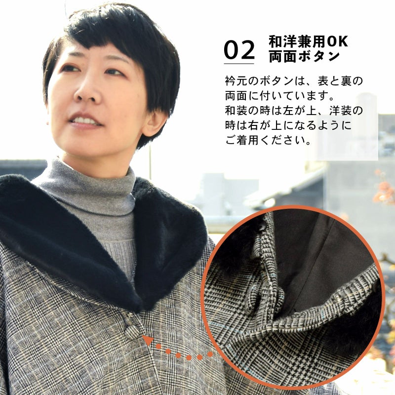 さらに表裏にボタンが付いているので、着物だけでなくカジュアルな洋服にも合わせて頂けます。優美さと実用性を兼ね備えたケーブは、寒い季節のお出かけに重宝します。