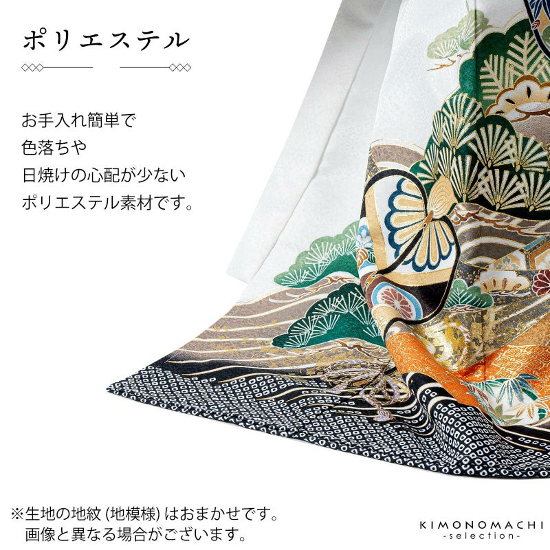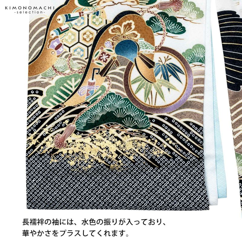 男の子らしく勇ましい、カッコイイ雰囲気。美しい発色の生地に美しい模様。長襦袢の中に水色の振りが入っており、お洒落な雰囲気をプラスしてくれます。