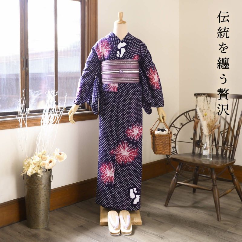お仕立て上がり絞り浴衣単品「夢はなび えんじ紺」有松絞り 女性浴衣単品 レディース浴衣単品 綿 お仕立て上がり浴衣 yukata