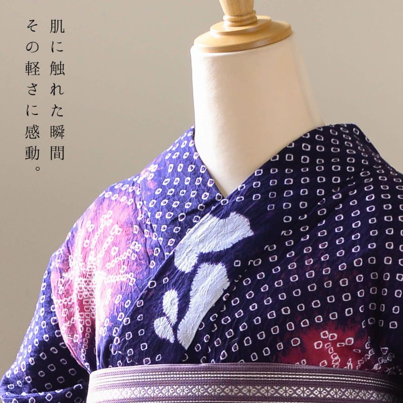 大人のお洒落な絞りの浴衣単品です。お仕立て上がりなので、すぐにご着用いただけます。