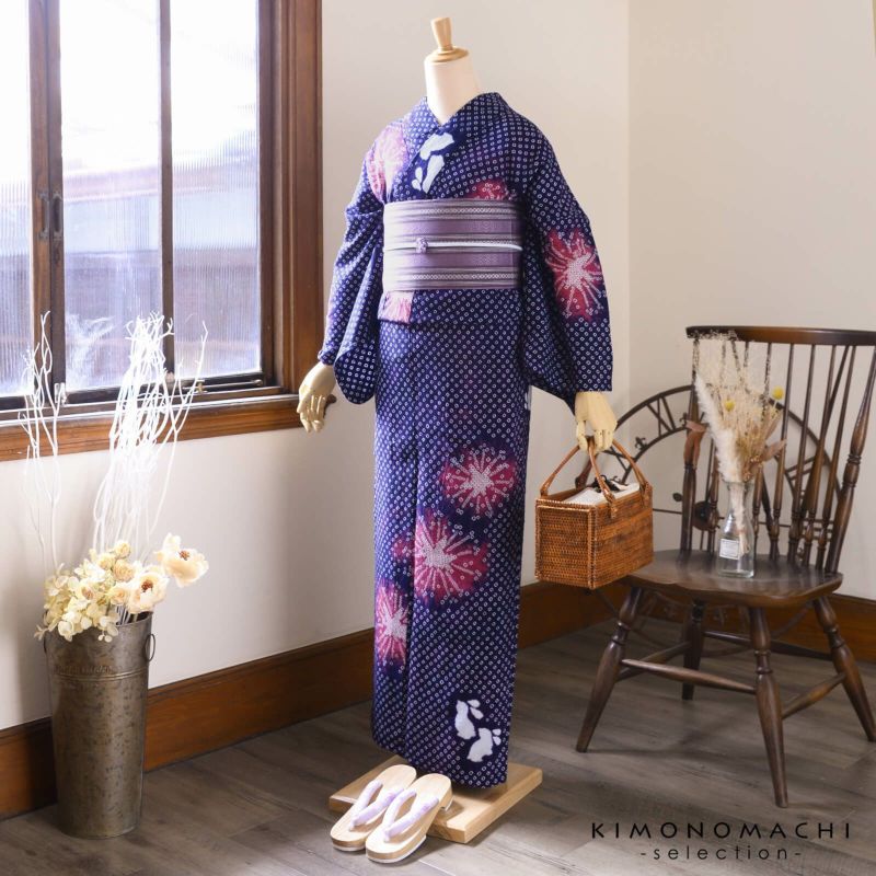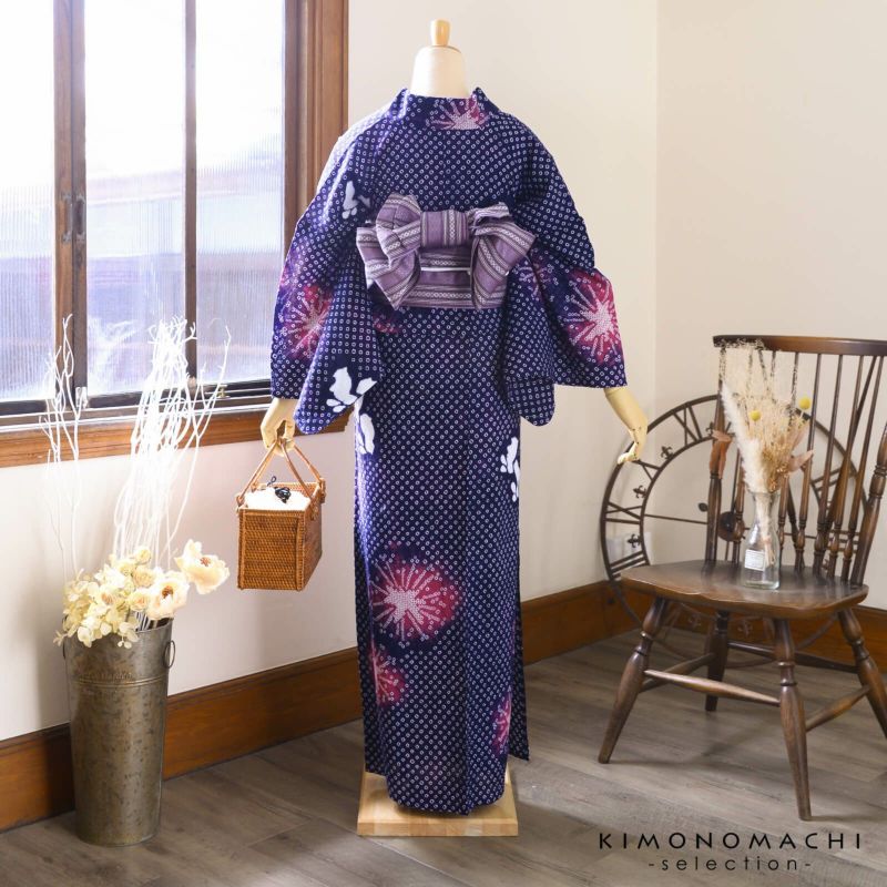 5. お仕立て上がり絞り浴衣単品「夢はなび えんじ紺」有松絞り 女性浴衣単品 レディース浴衣単品 綿 お仕立て上がり浴衣 yukata【メール便不可】