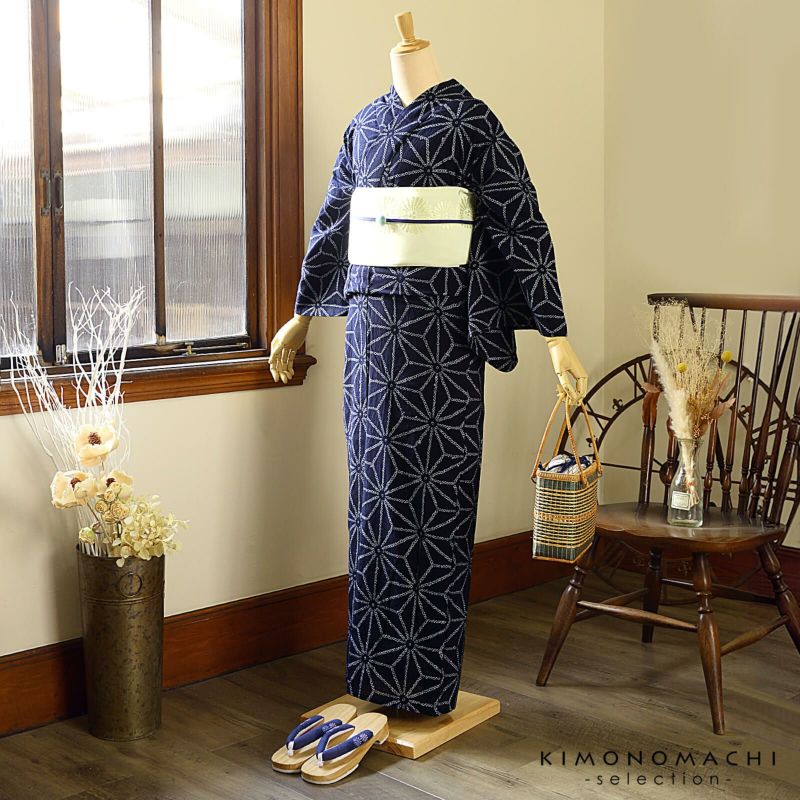 お仕立て上がり絞り浴衣単品「麻の葉 紺」有松絞り 女性浴衣単品 レディース浴衣単品 綿 お仕立て上がり浴衣 yukata