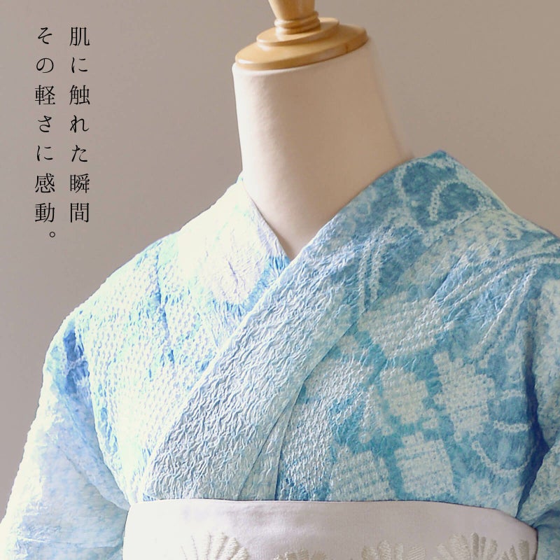 5. お仕立て上がり絞り浴衣単品「三浦牡丹 水色」有松絞り 女性浴衣単品 レディース浴衣単品 綿 お仕立て上がり浴衣 yukata【メール便不可】