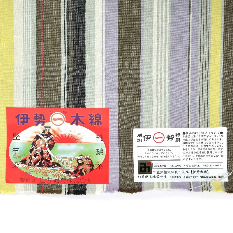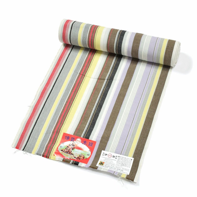 5. 伊勢木綿 洗える着物 反物 レディース「やたら縞 ノベルティストライプ」未仕立て 木綿きもの 日本製 三重県 伝統工芸品 単衣 綿 カジュアル 小紋 レディース【メール便不可】