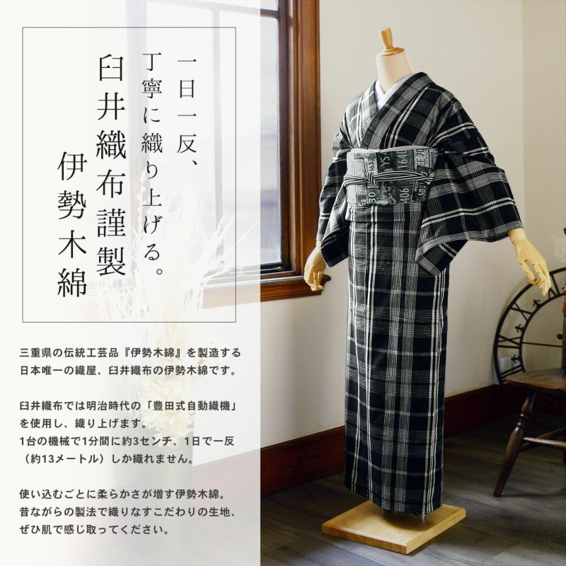 5. 伊勢木綿 洗える着物 単品「重ね格子 黒」お仕立て上がり 木綿きもの 日本製 三重県 伝統工芸品 単衣 綿 カジュアル チェック 小紋 レディース キモノ kimono【メール便不可】