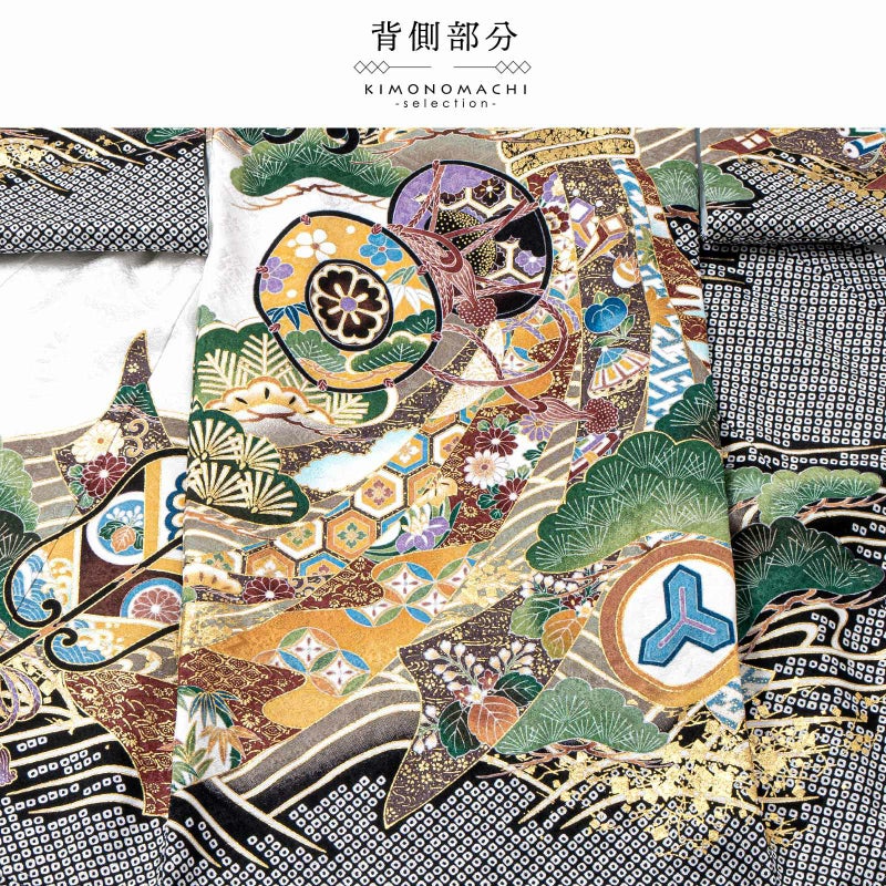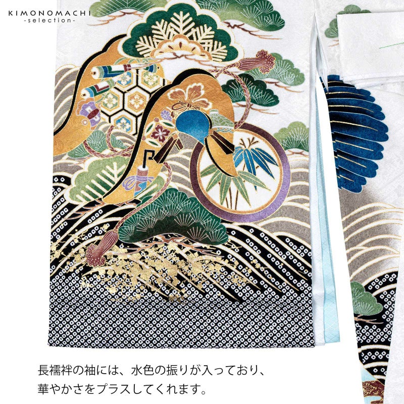男の子らしく勇ましい、カッコイイ雰囲気。美しい発色の生地に美しい模様。長襦袢の中に水色の振りが入っており、お洒落な雰囲気をプラスしてくれます。