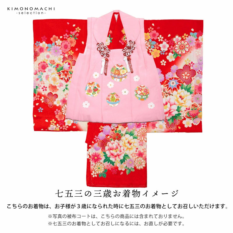 また、お子様が3歳になられた時に七五三のお着物としてもお召しいただけます。お直しが必要になりますので、別途お申込みください。