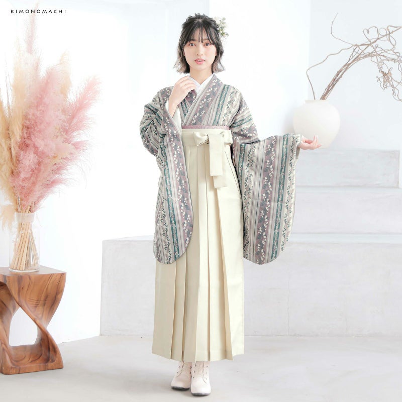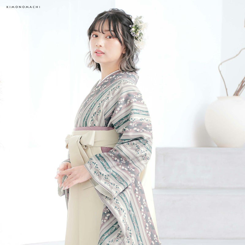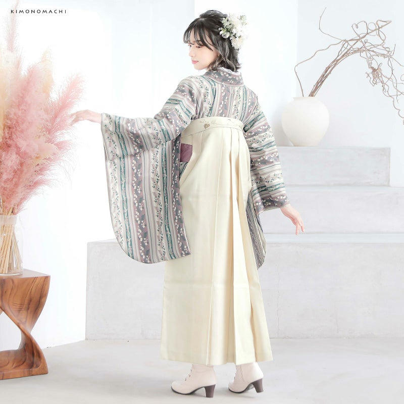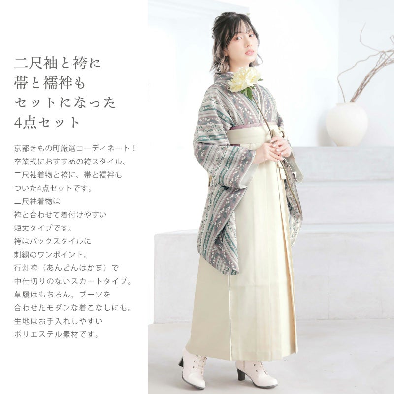 京都きもの町厳選コーディネート!卒業式におすすめのスタイル、二尺袖着物と袴に、帯と襦袢もついた4点セットです。